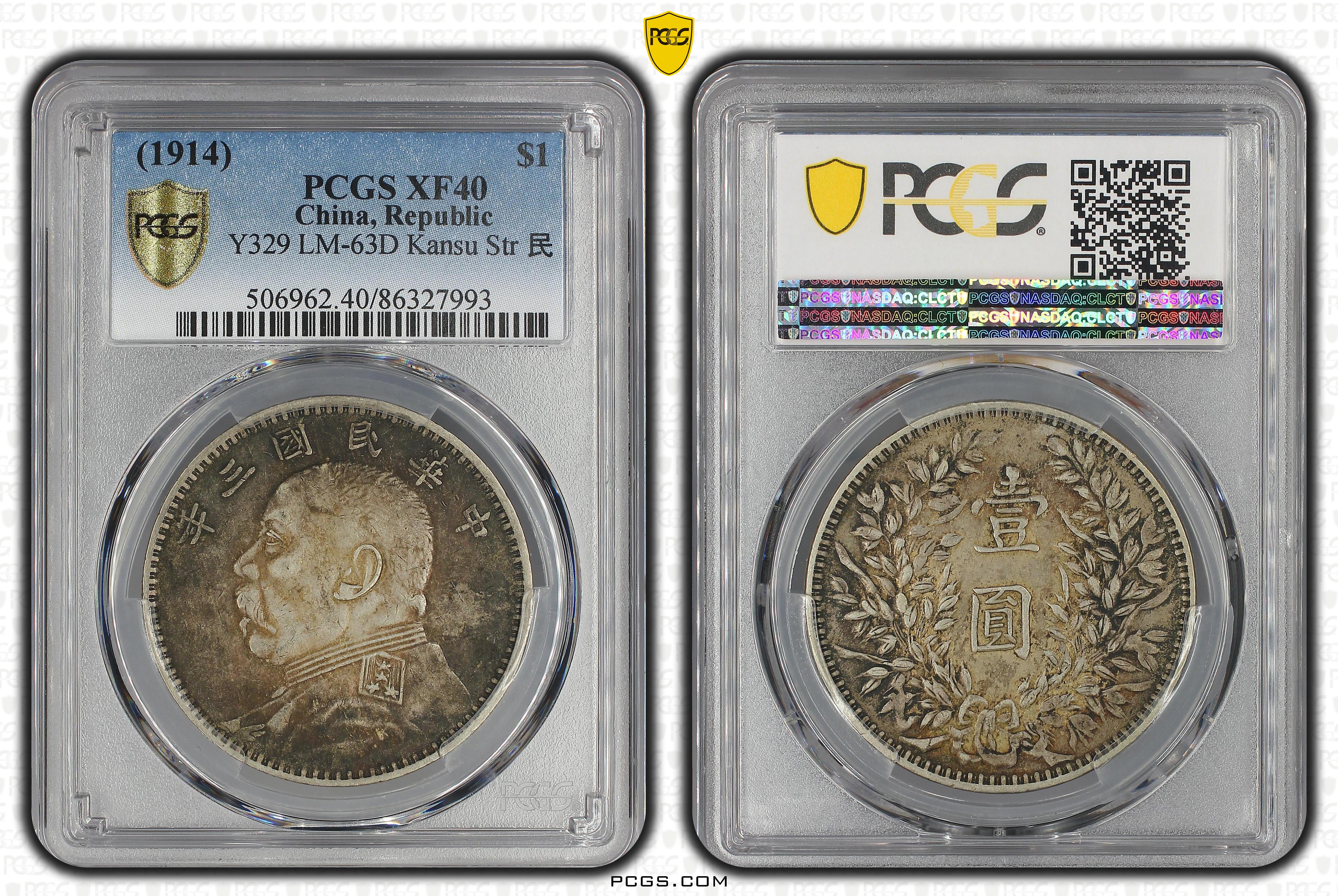 (1914)三 $1 LM-63D Kansu Str 民 XF40 认证号86327993, PCGS号506962