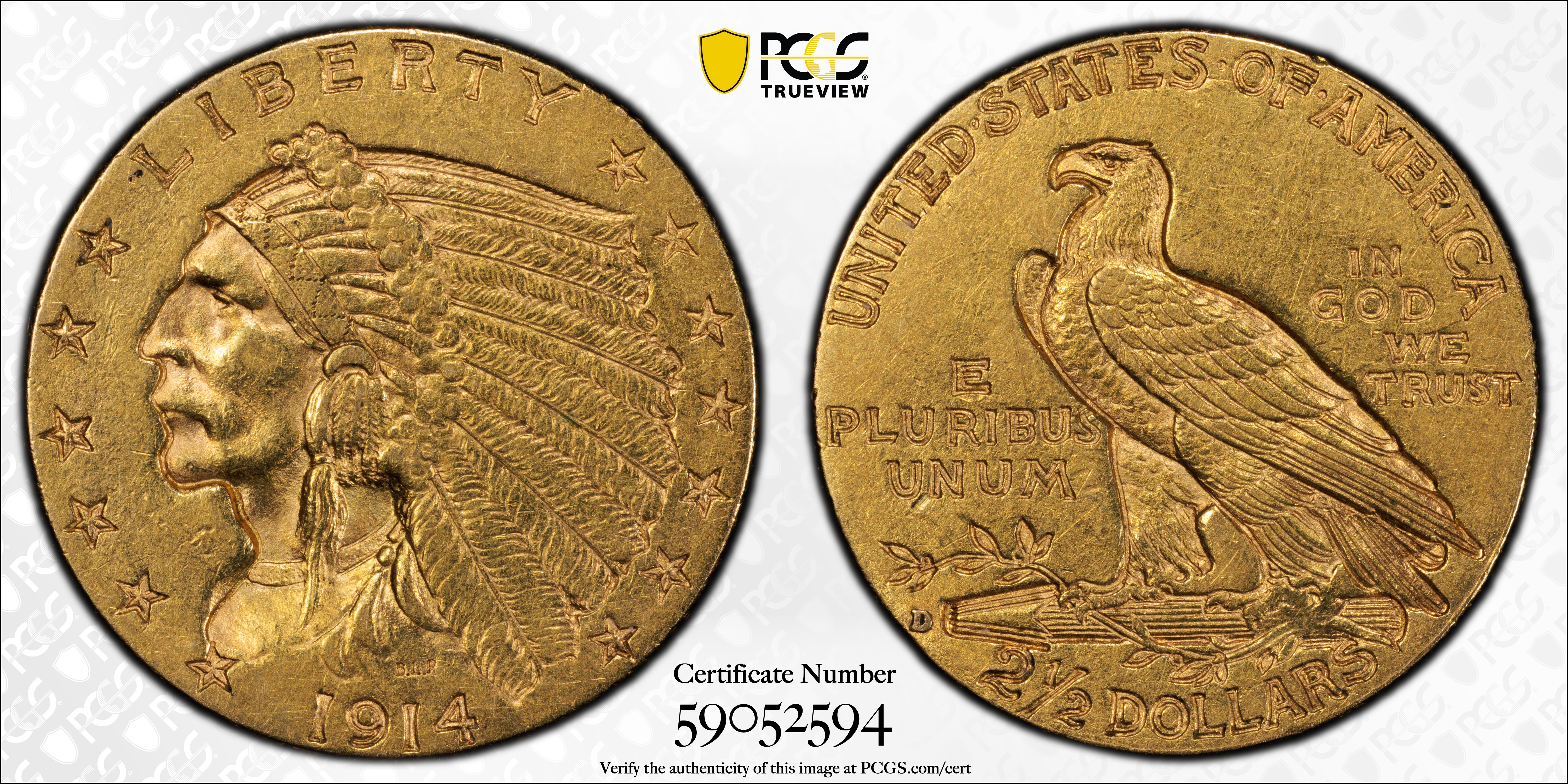 1914-D $2.50 AU58 认证号59052594, PCGS号7947