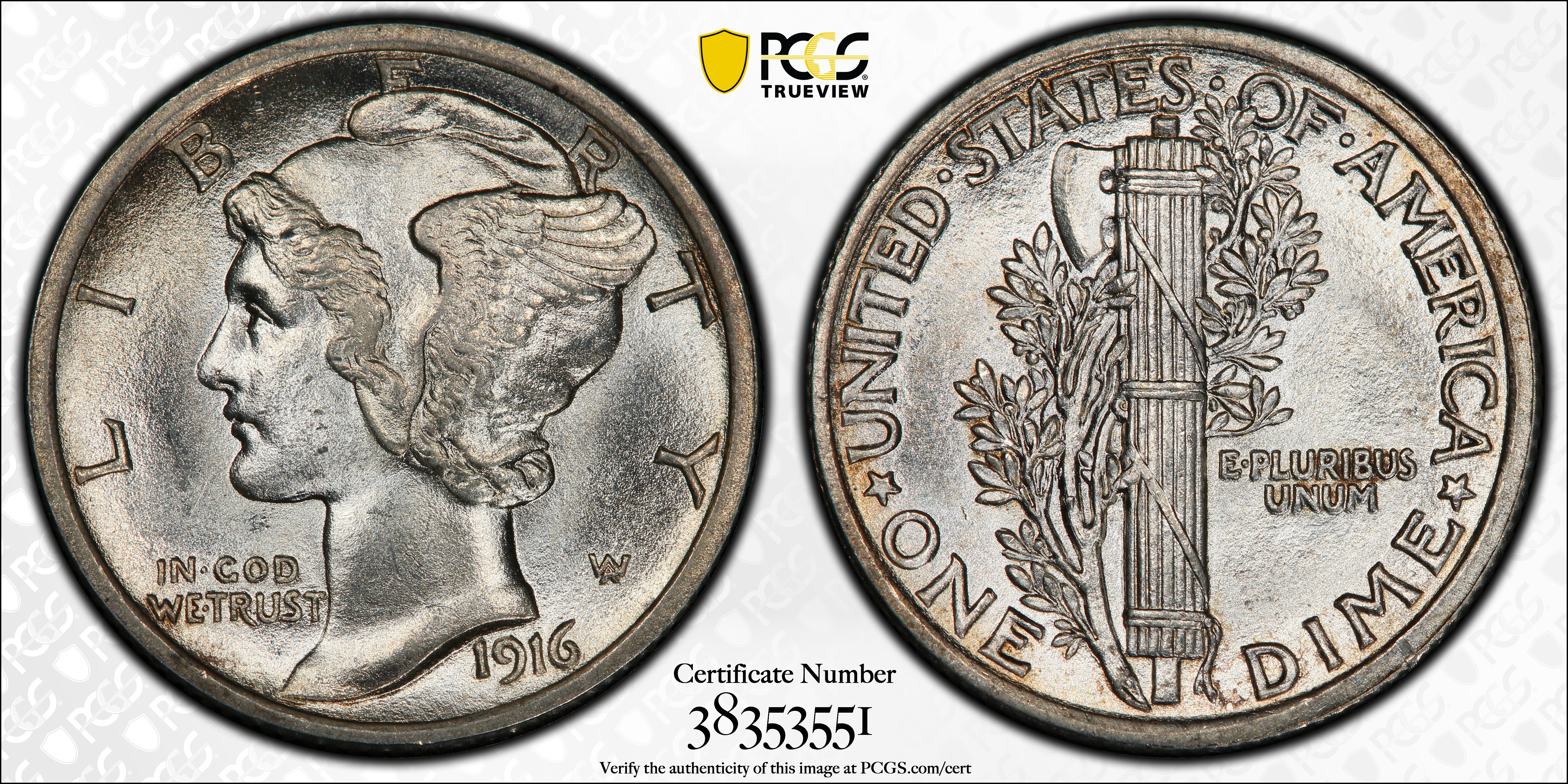 1916 10C Mercury, FB MS64FB 认证号38353551, PCGS号4905