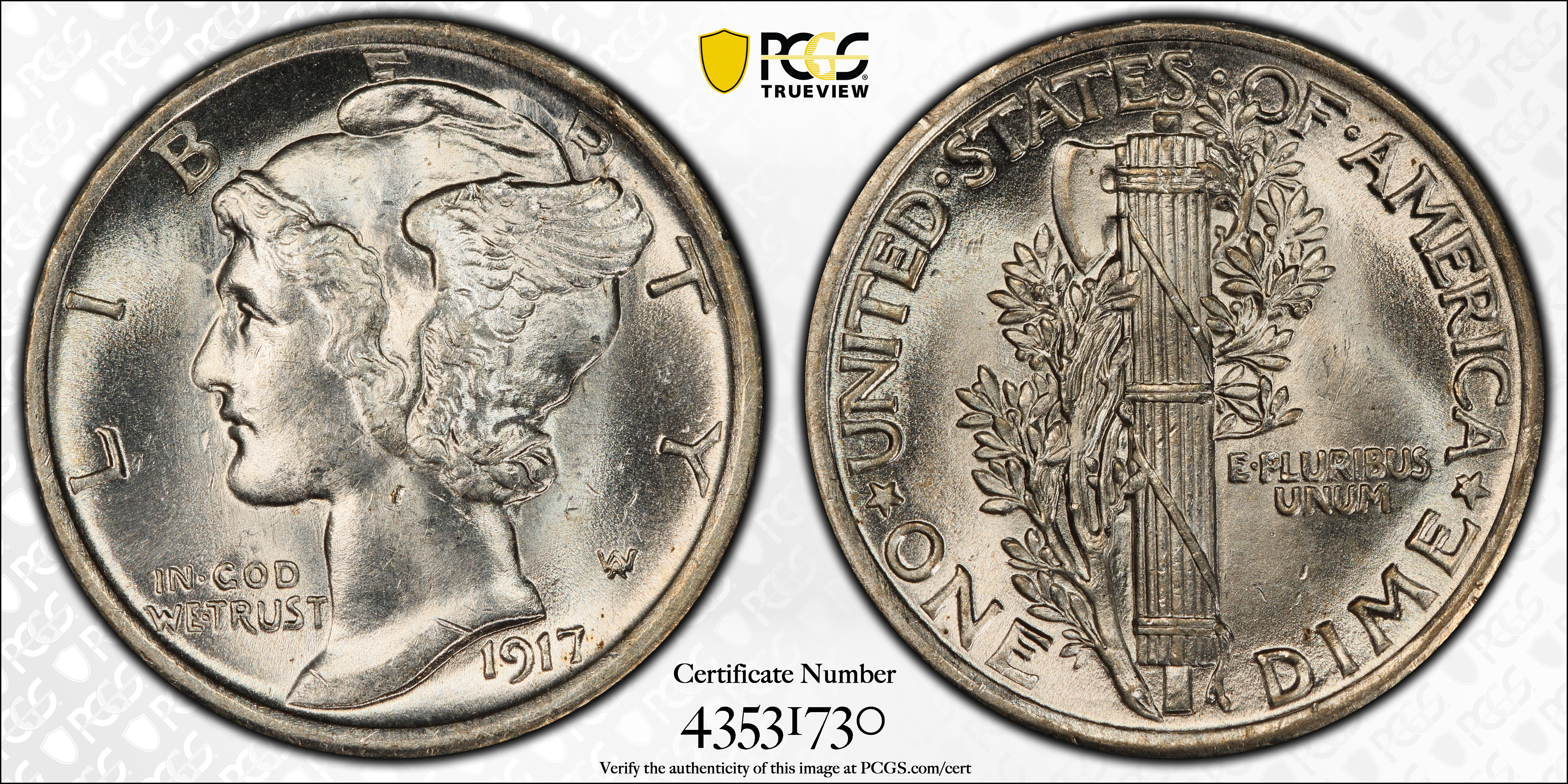 1917 10C, FB MS62FB 认证号43531730, PCGS号4911