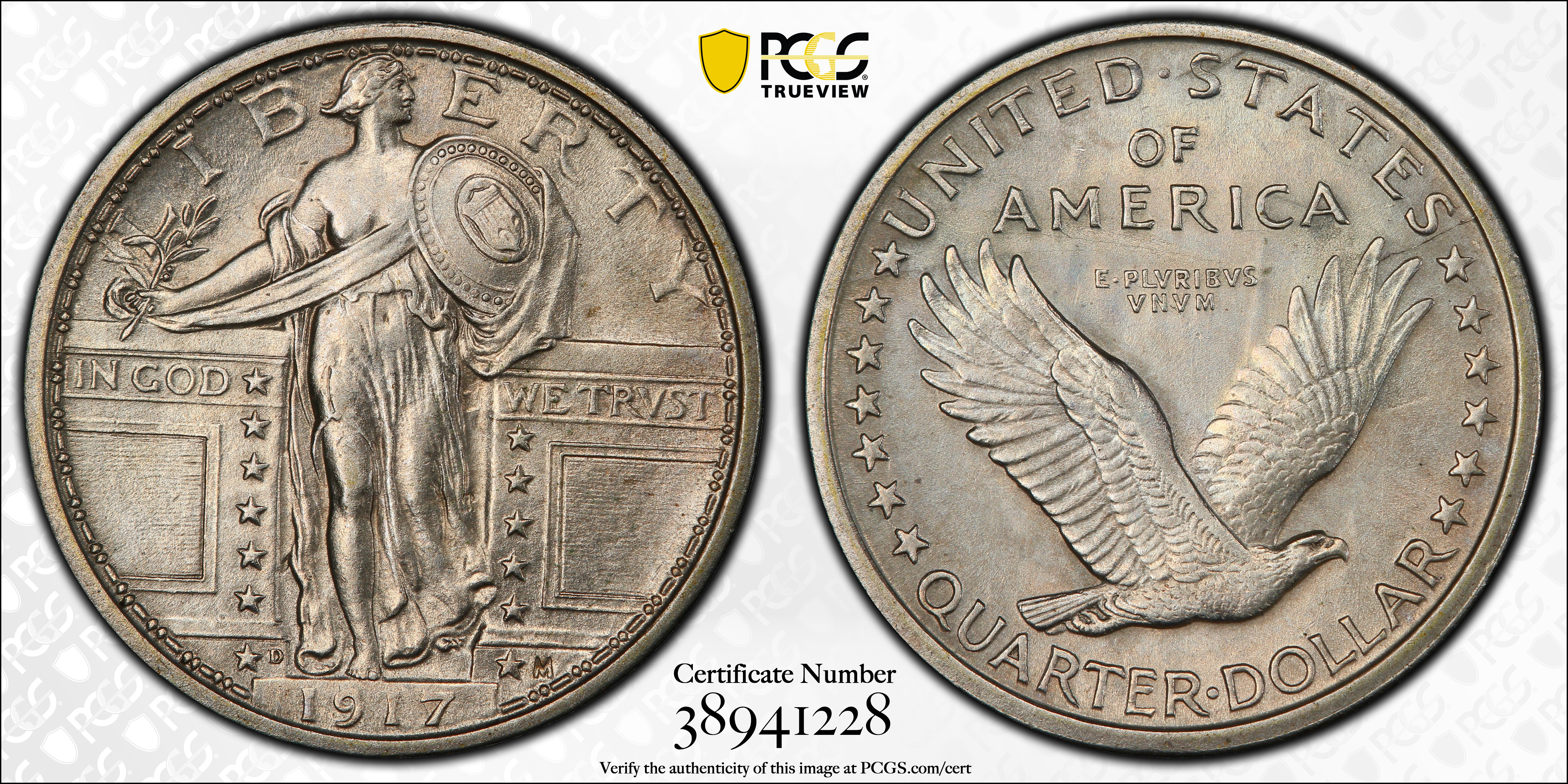 1917-D 25C Type 1 N1 认证号38941228, PCGS号5708