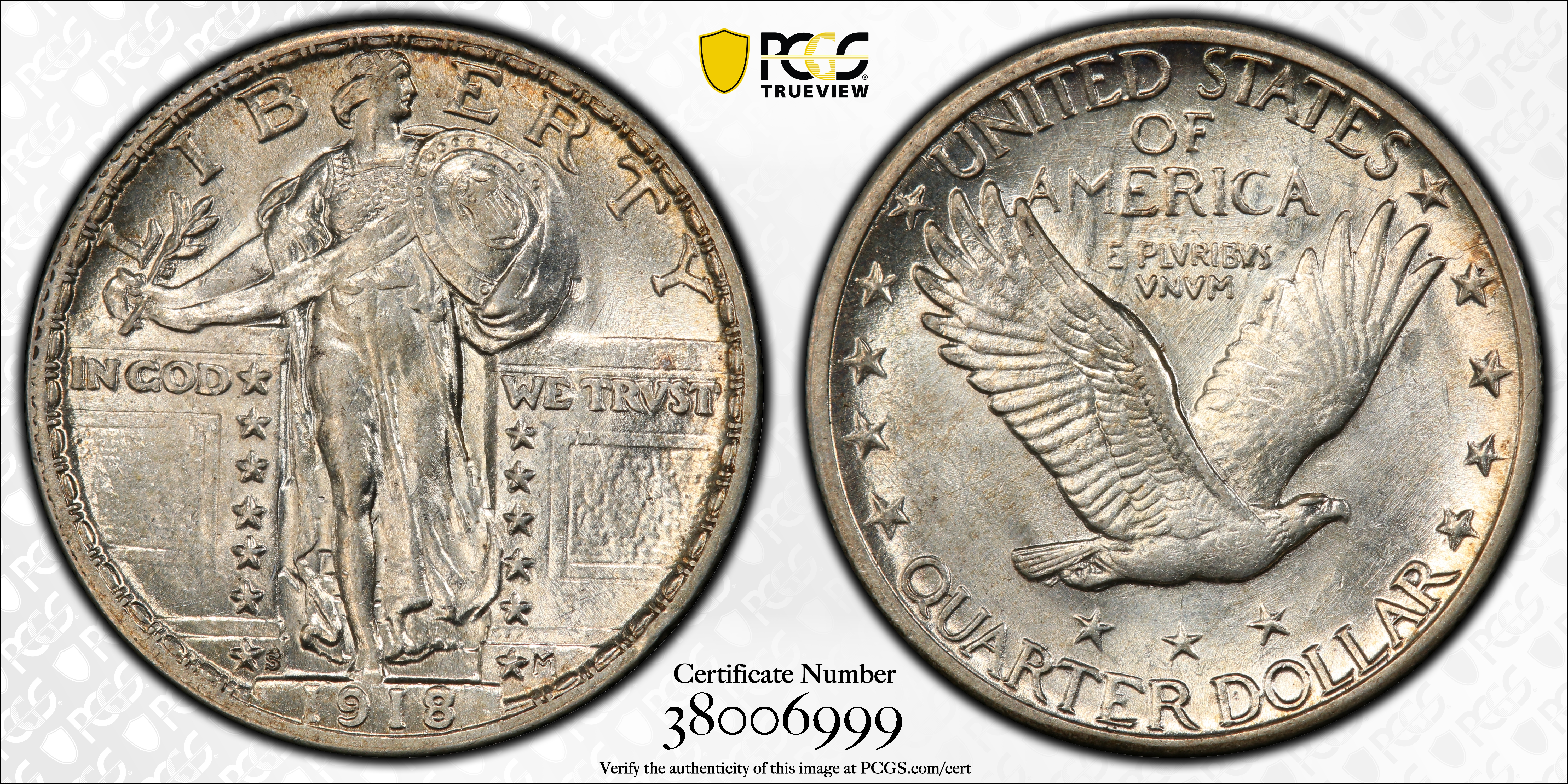 1918-S 25C AU58 认证号38006999, PCGS号5724