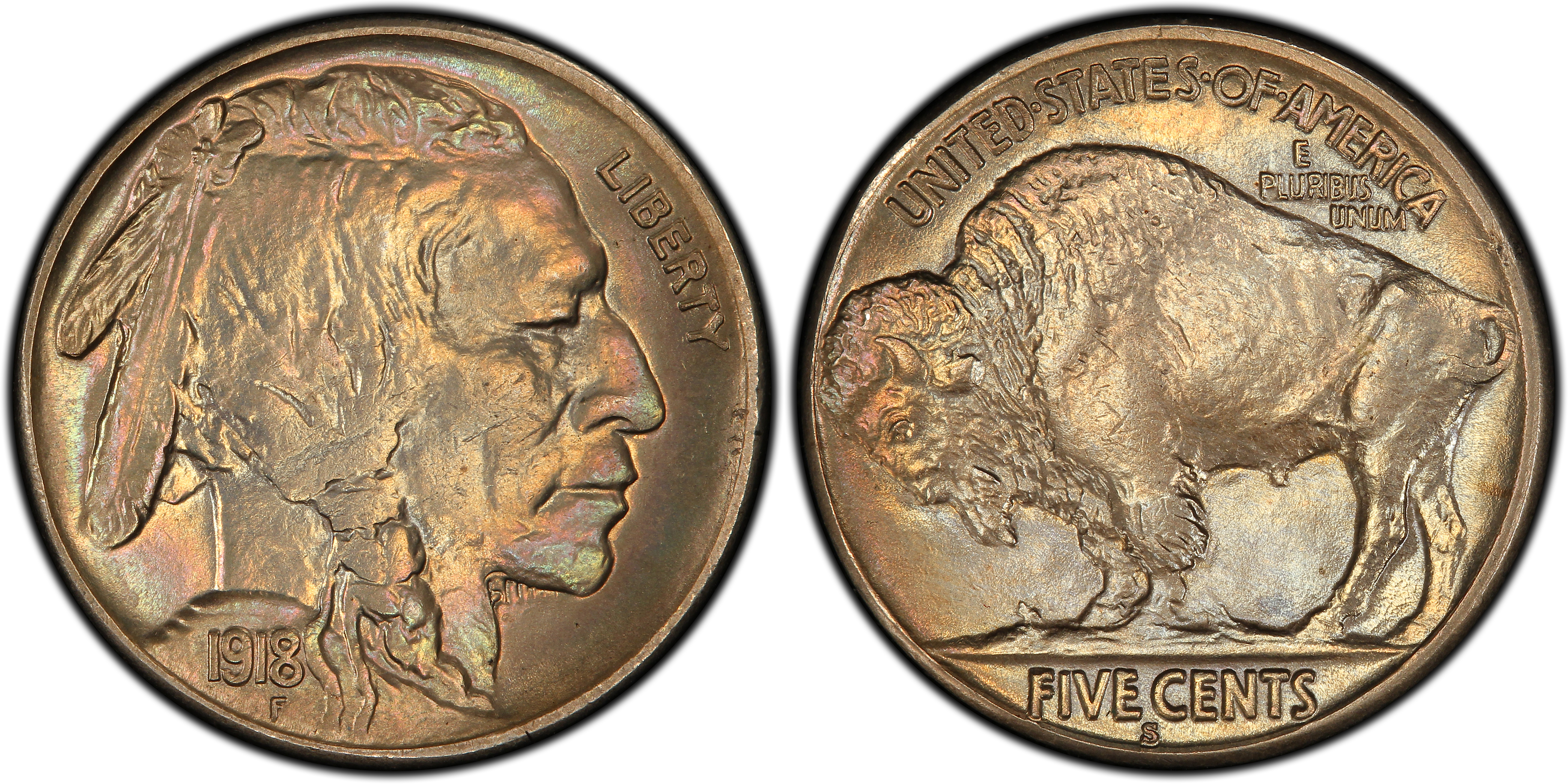 The 1918-S is scarce in circulated grades, rare in Mint State, and very rare in Gem condition. In fact, in Gem condition it is the rarest regular strike (non-variety) 1913 to 1919 Buffalo nickel. Strike can be an issue and many Mint State survivors show softness of the hair braid and Buffalo's horn and tail. Sharply struck examples are definitely the exception. Luster can be muted or somewhat frosty. In Gem condition this coin is a major rarity.