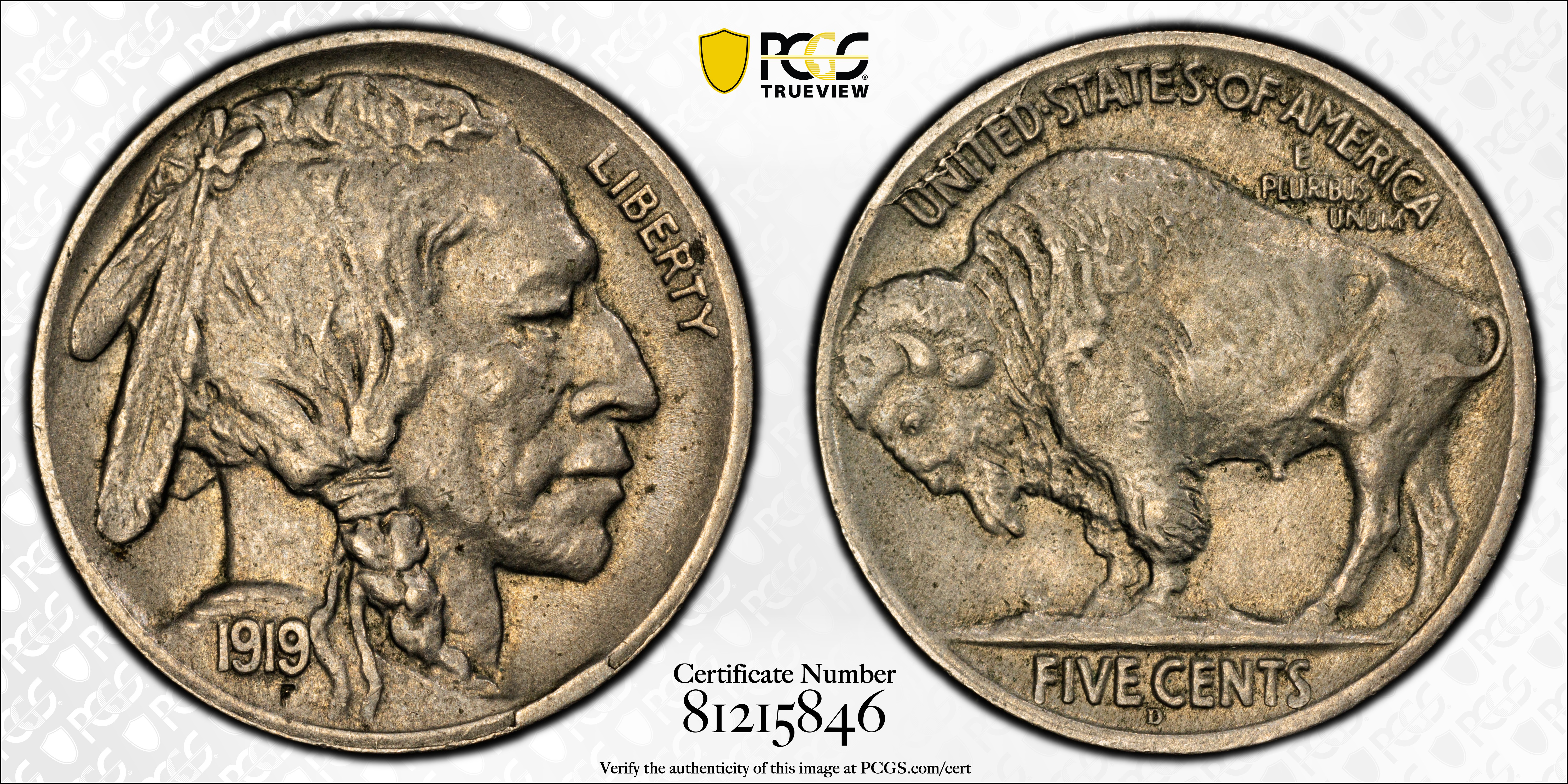 1919-D 5C AU53 认证号81215846, PCGS号3942