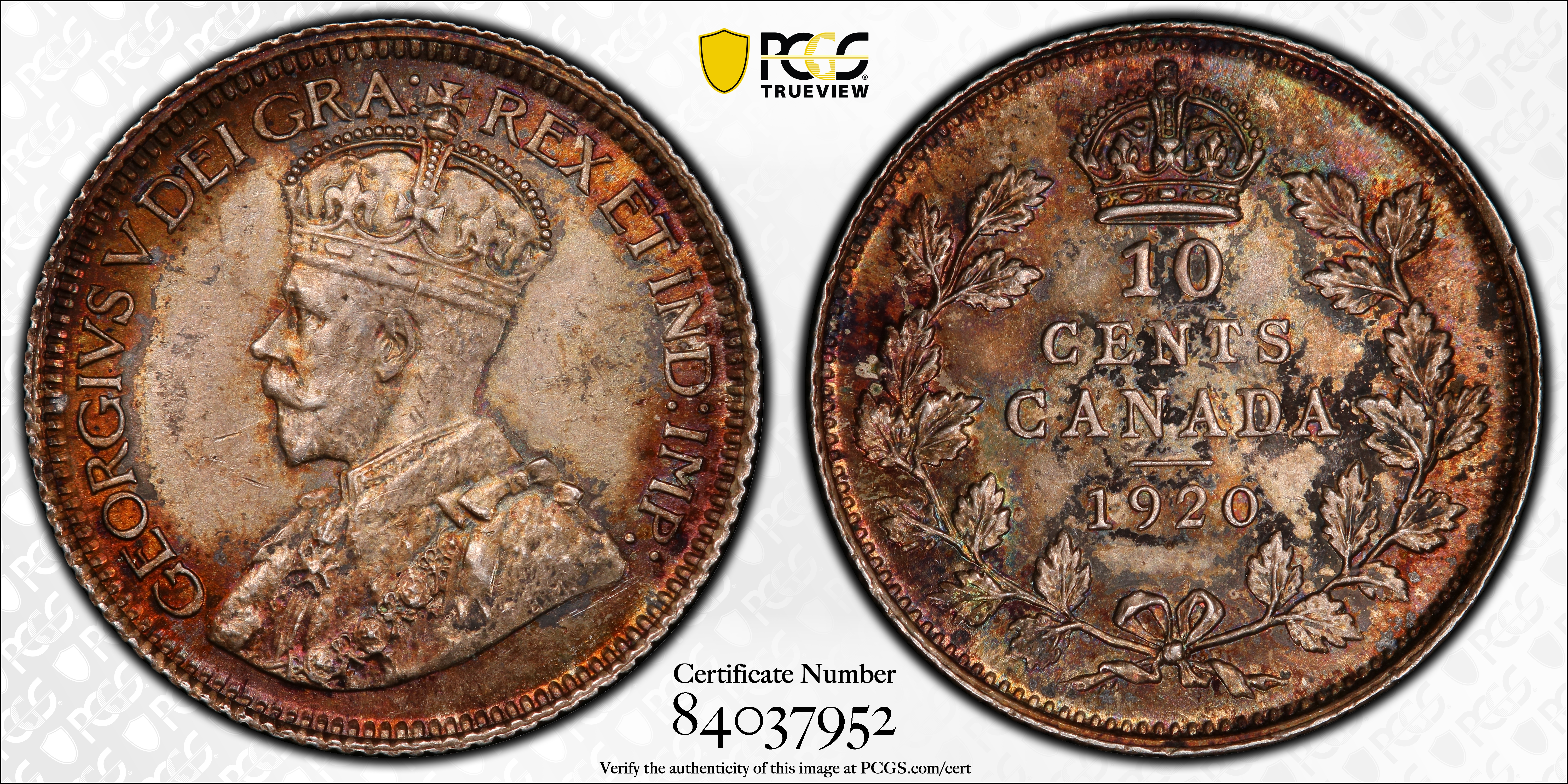1920 10C MS65 认证号84037952, PCGS号31447