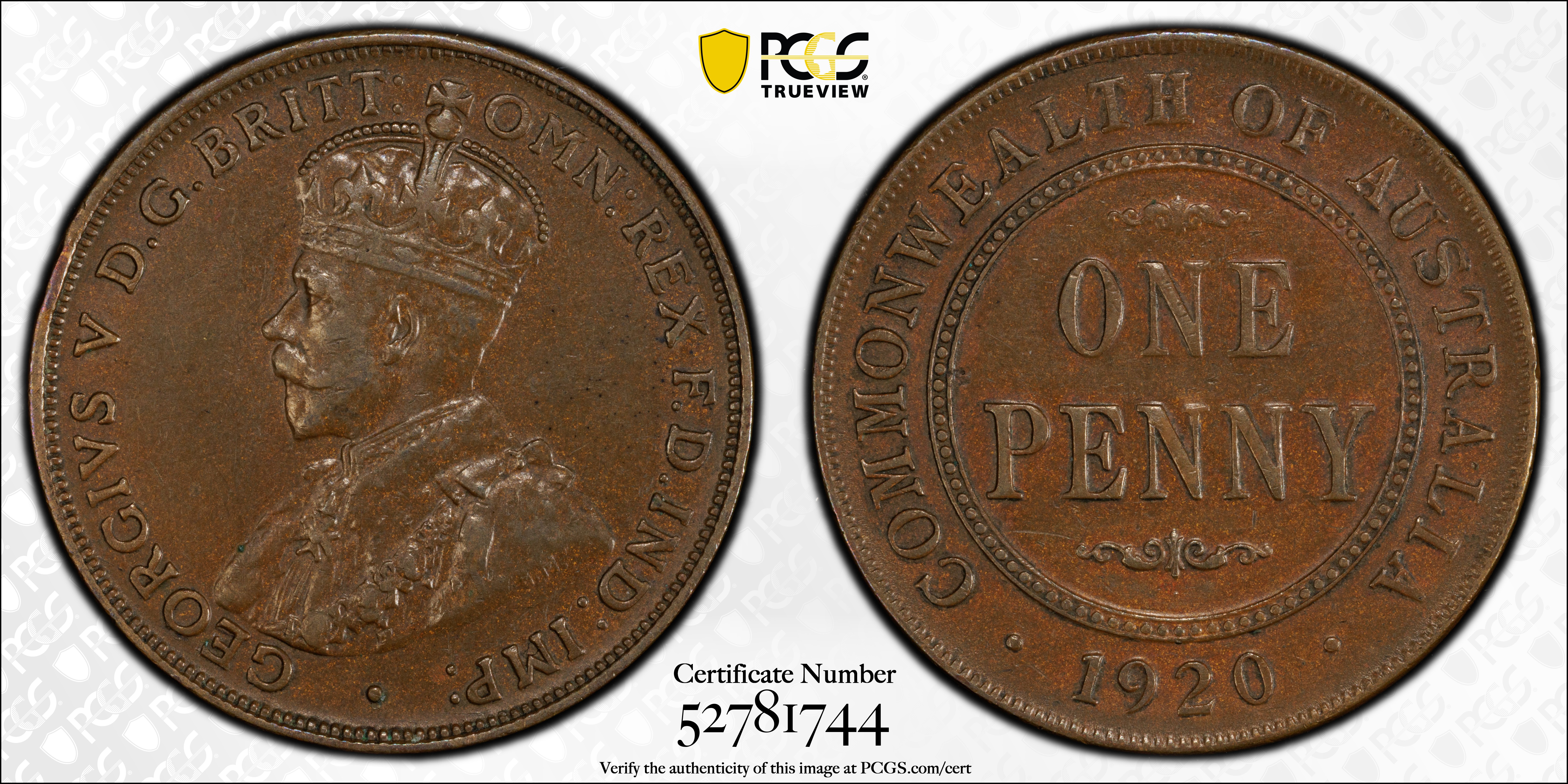 1920 //. 1D Dot Below Indian Obverse, BN AU53BN 认证号52781744, PCGS号143775