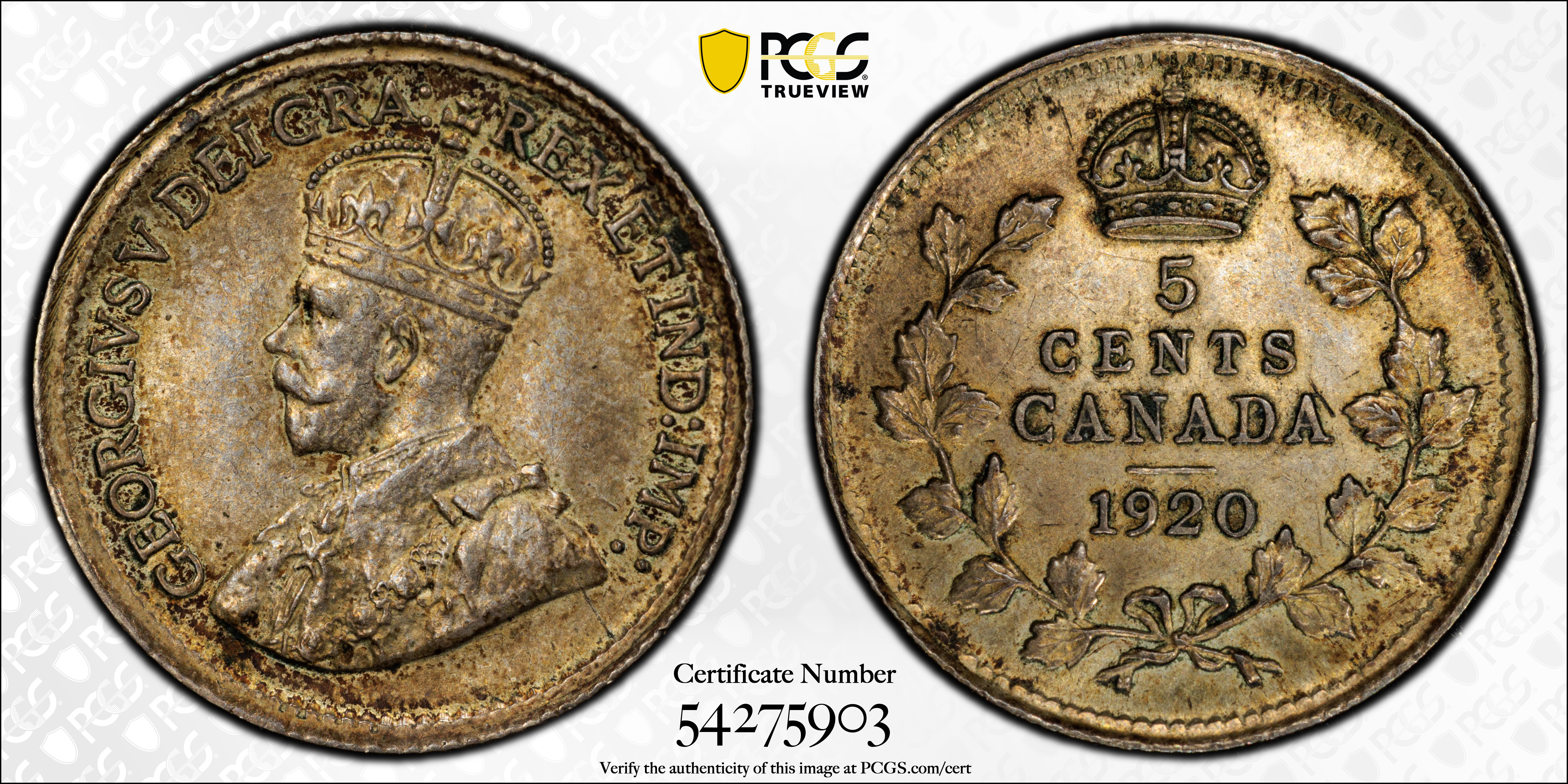 1920 5C AU58 认证号54275903, PCGS号31061
