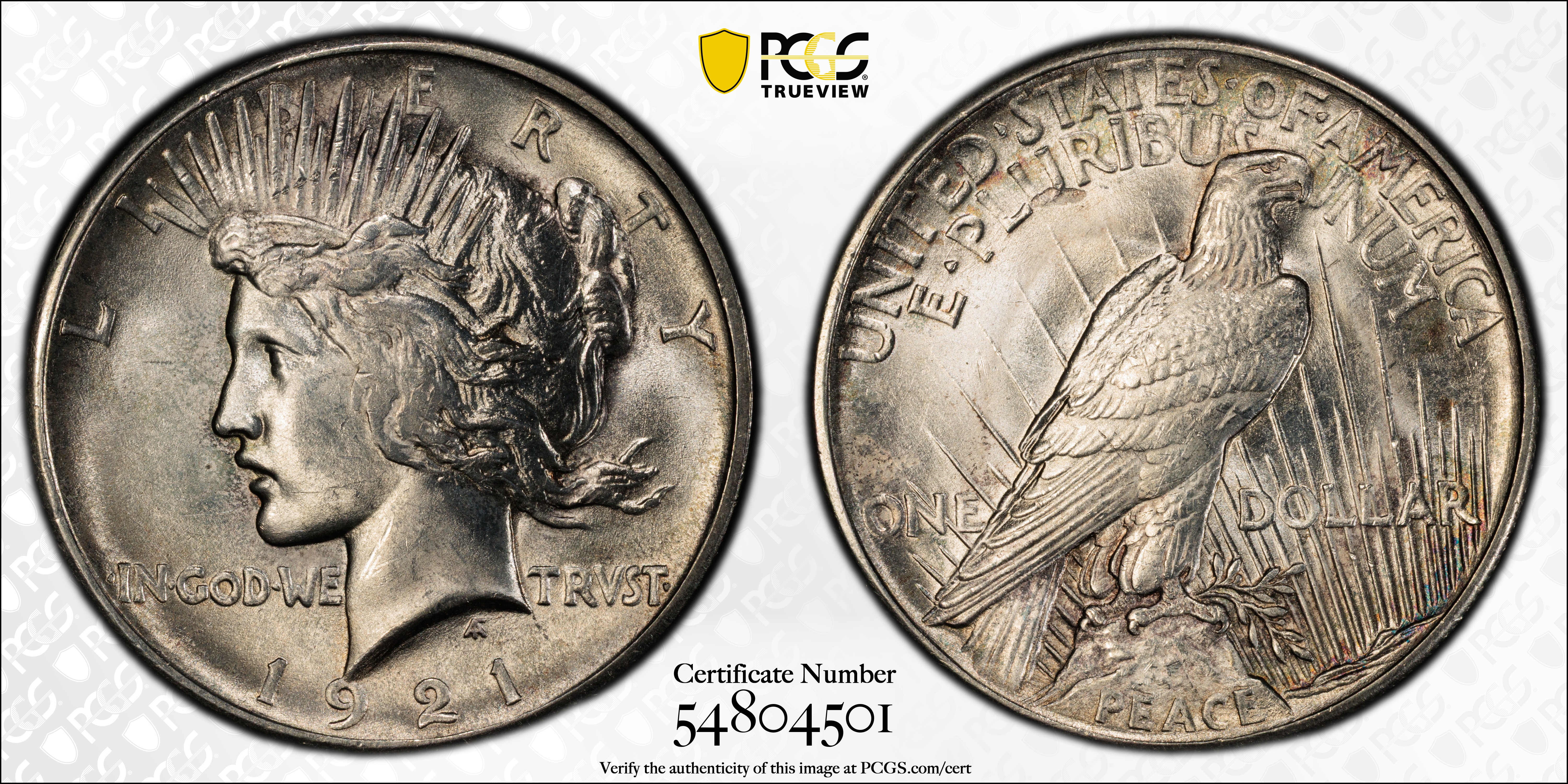 1921 $1 High Relief, Peace MS64 认证号54804501, PCGS号7356