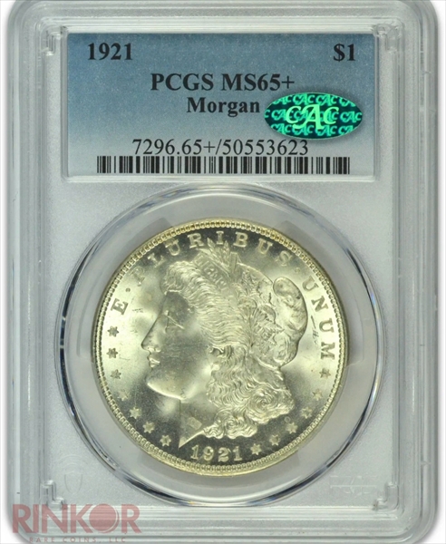 1921 $1 Morgan MS65+ 认证号50553623, PCGS号7296