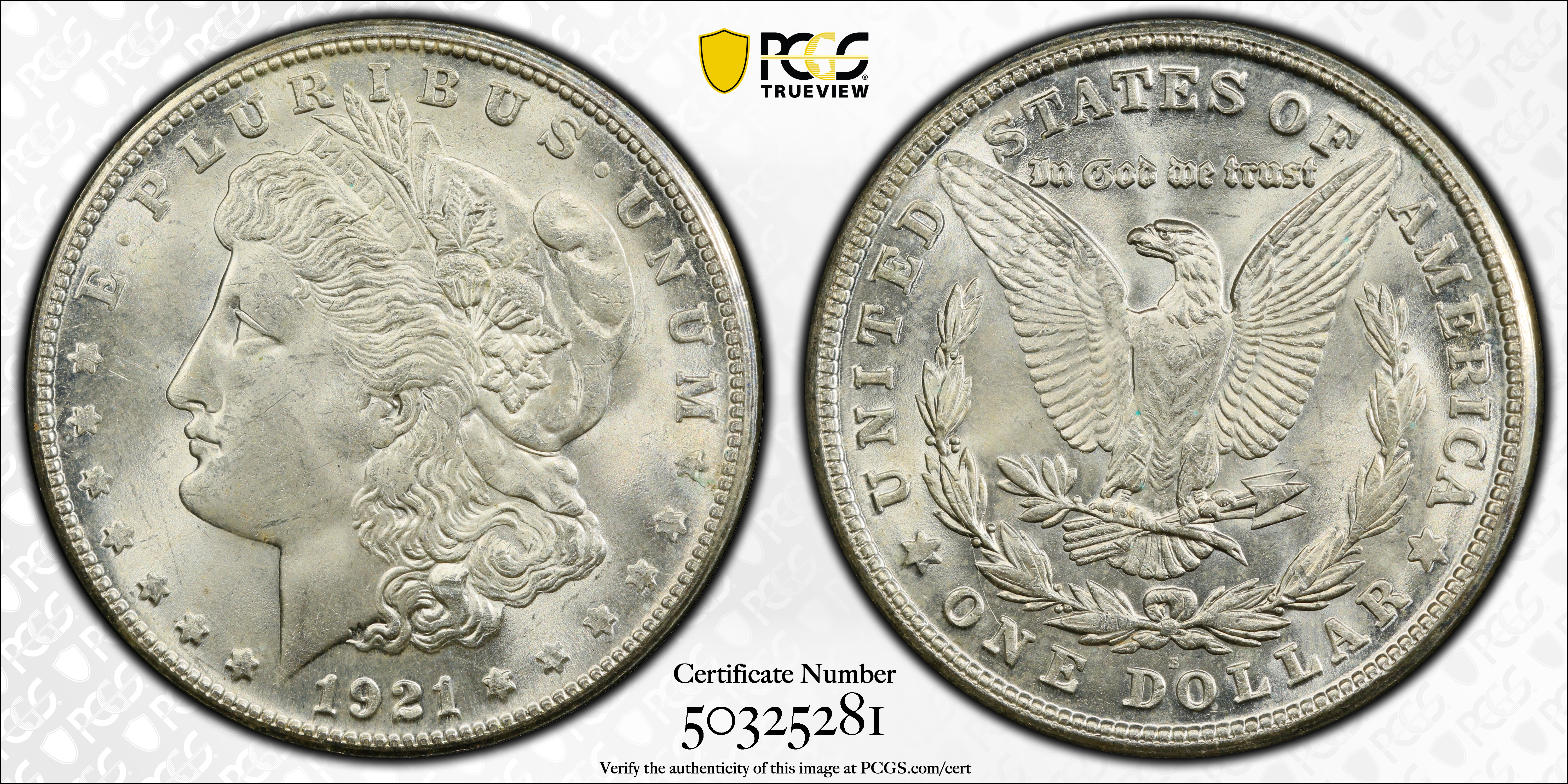 1921-S $1 MS65 认证号50325281, PCGS号7300