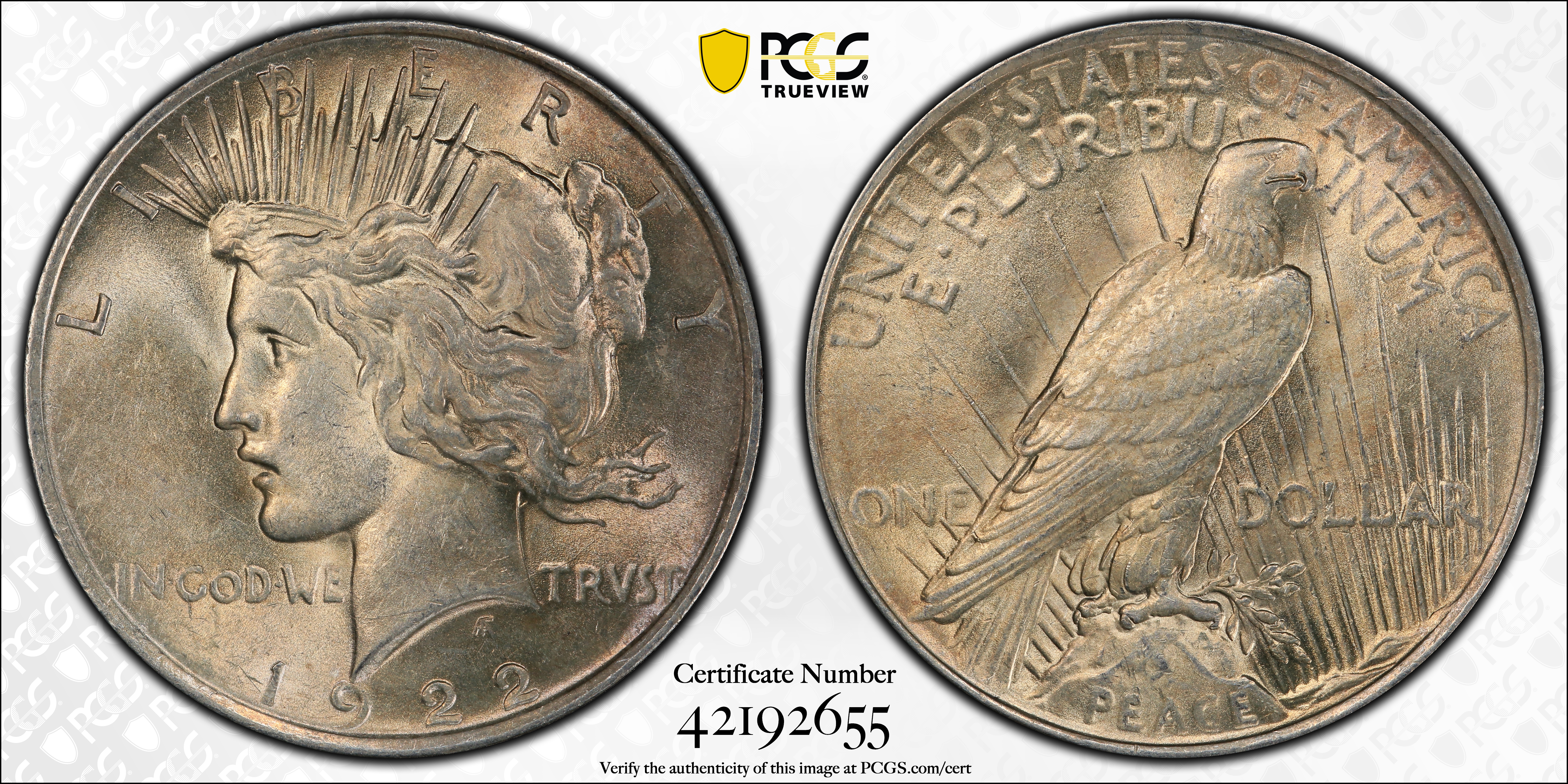 1922 $1 AU58 认证号42192655, PCGS号7357