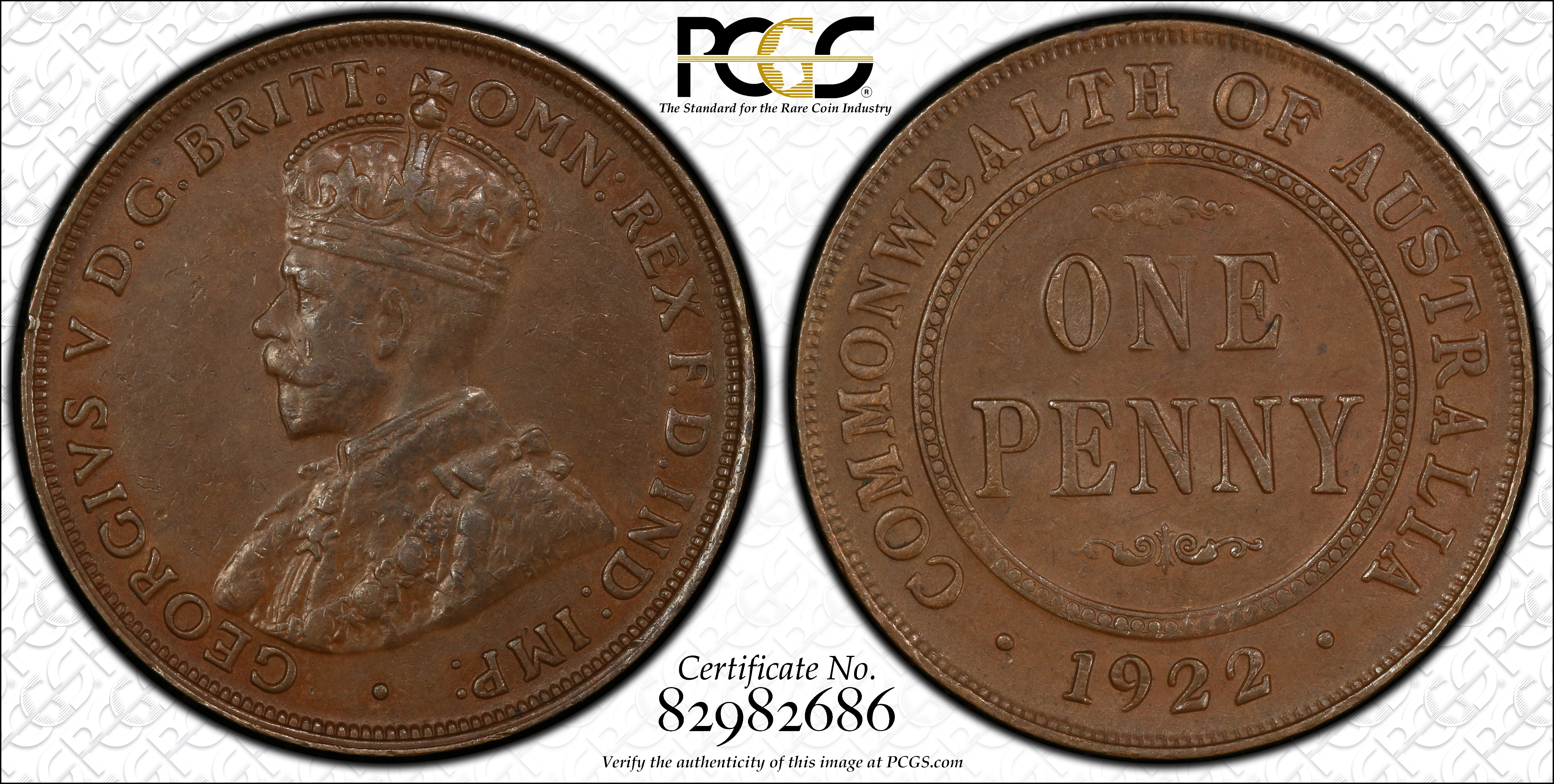 1922 (p) 1D Indian Obverse, BN AU50BN 认证号82982686, PCGS号569791