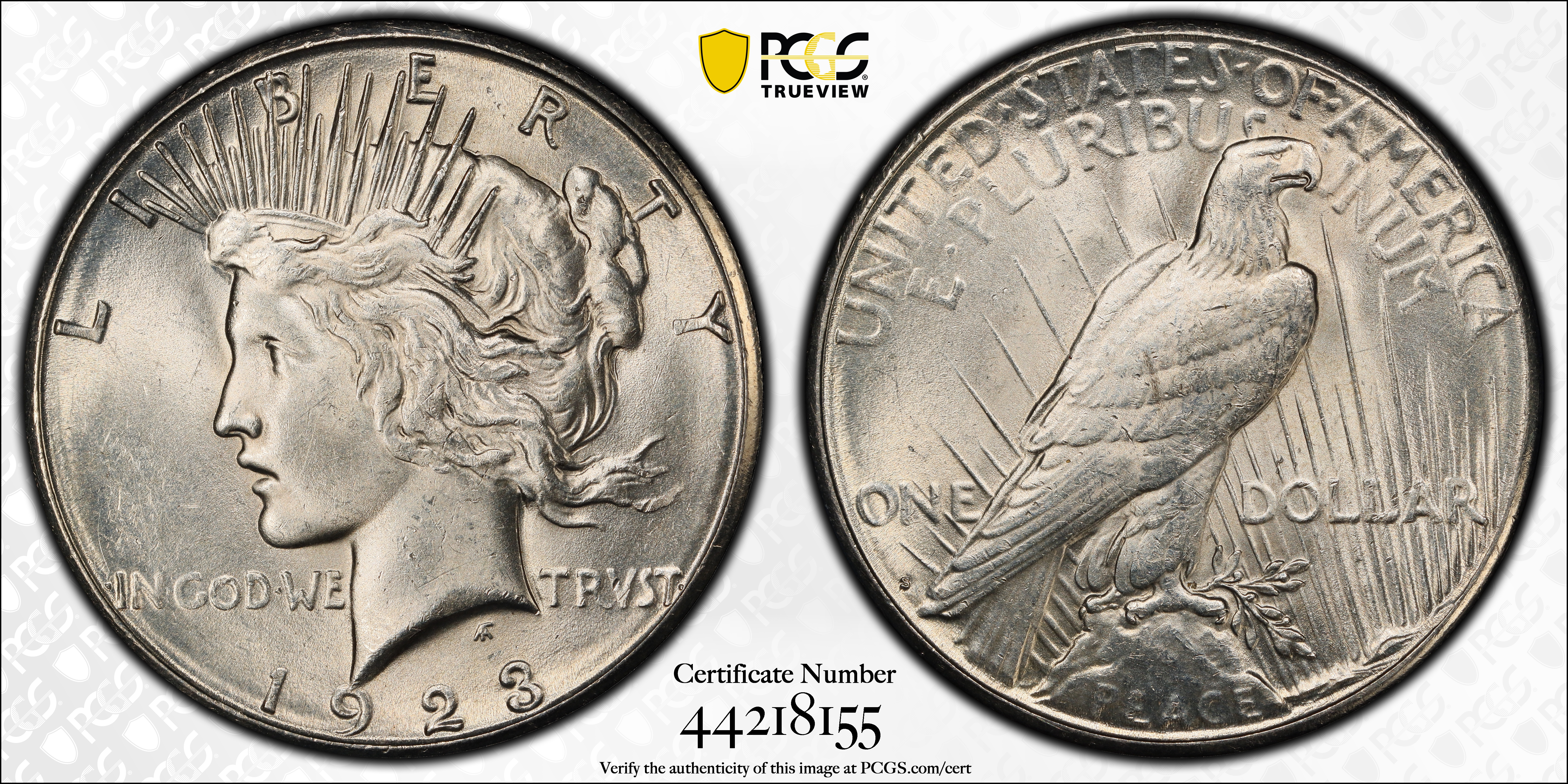 1923-S $1 MS62 认证号44218155, PCGS号7362