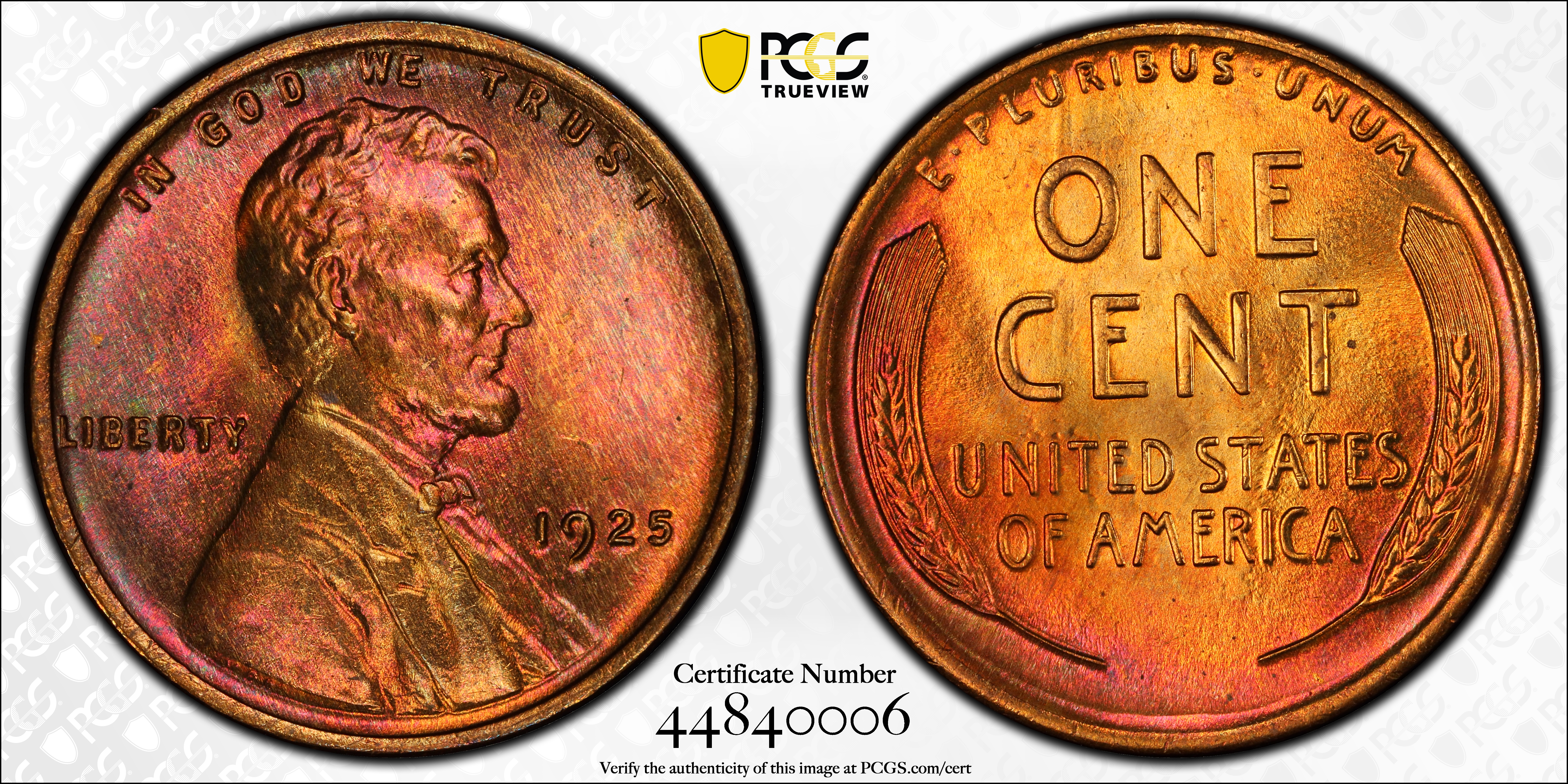 1925 1C, RB MS65RB 认证号44840006, PCGS号2559