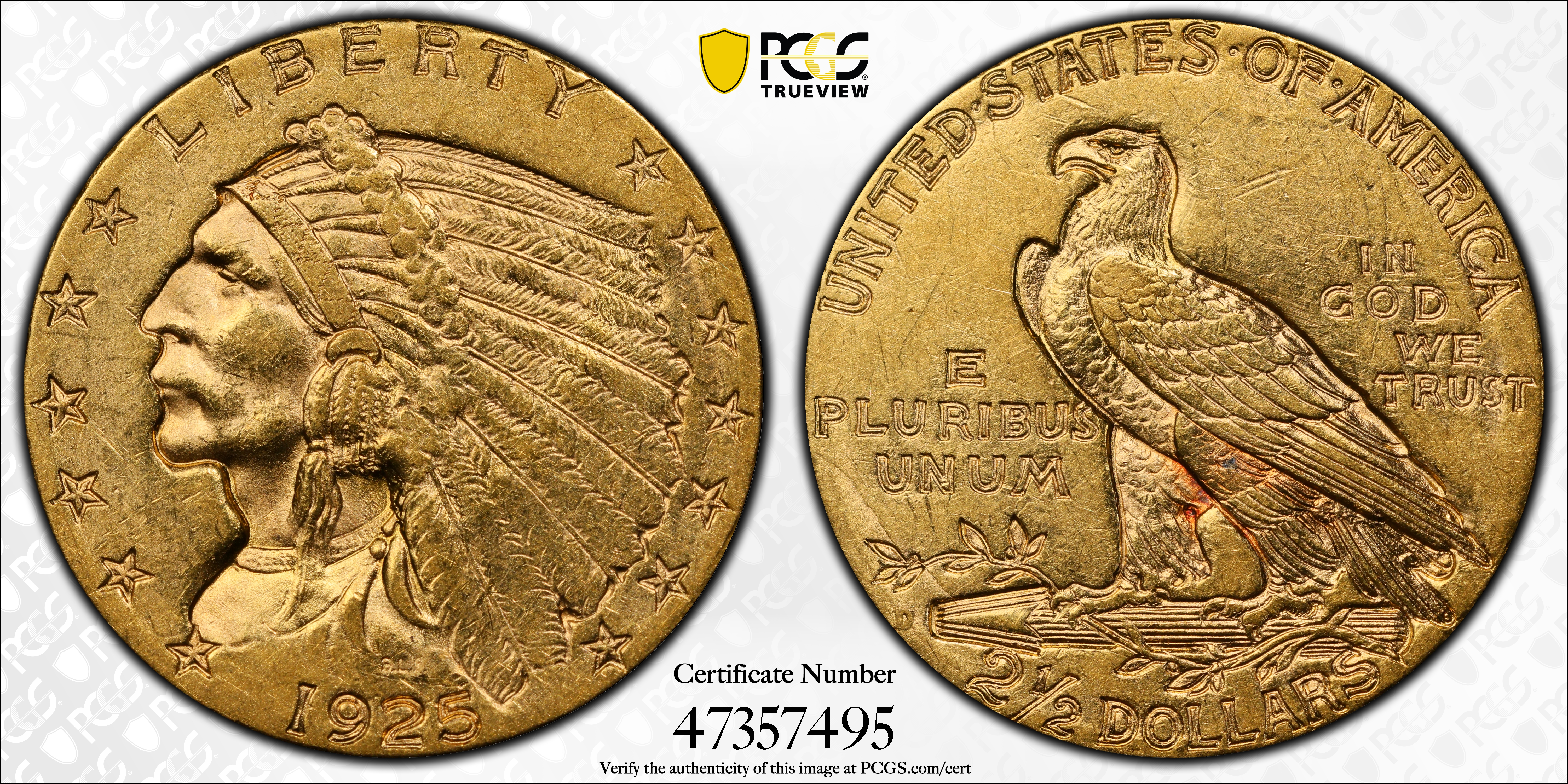 1925-D $2.50 AU58 认证号47357495, PCGS号7949