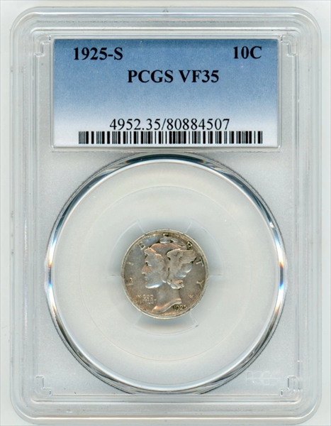 1925-S 10C VF35 认证号80884507, PCGS号4952