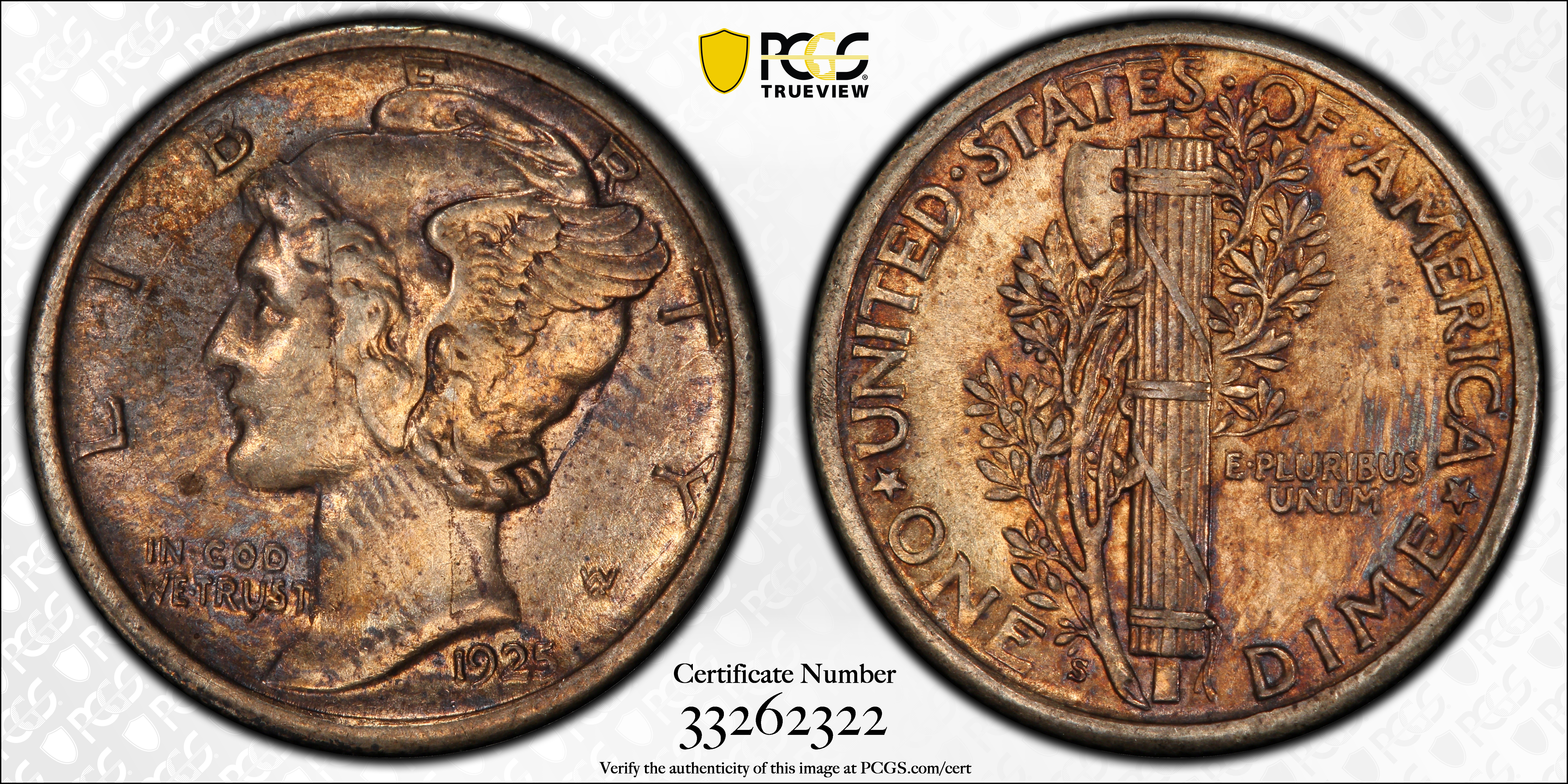 1925-S 10C AU53 认证号33262322, PCGS号4952