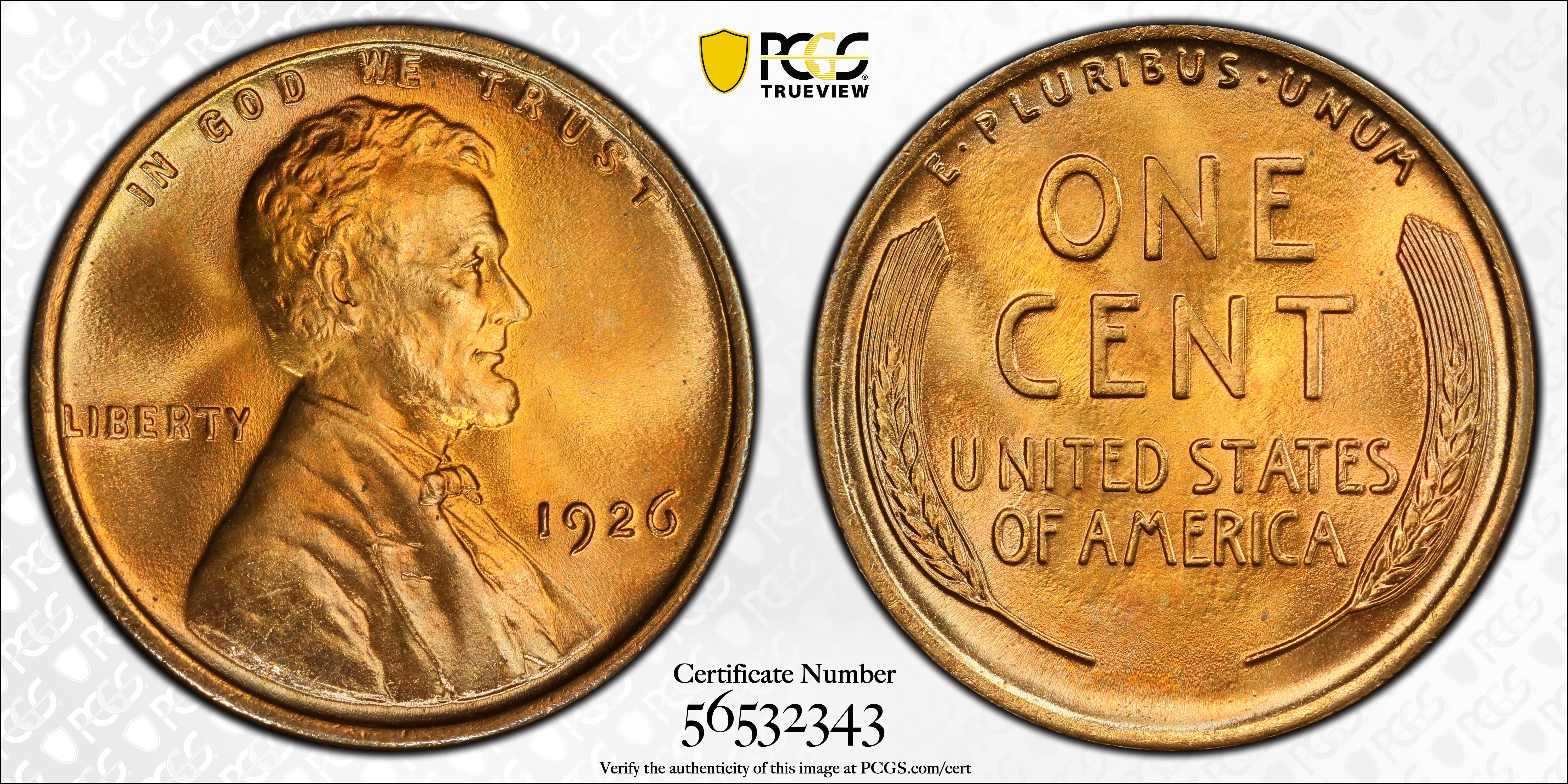 1926 1C, RD MS68RD 认证号56532343, PCGS号2569