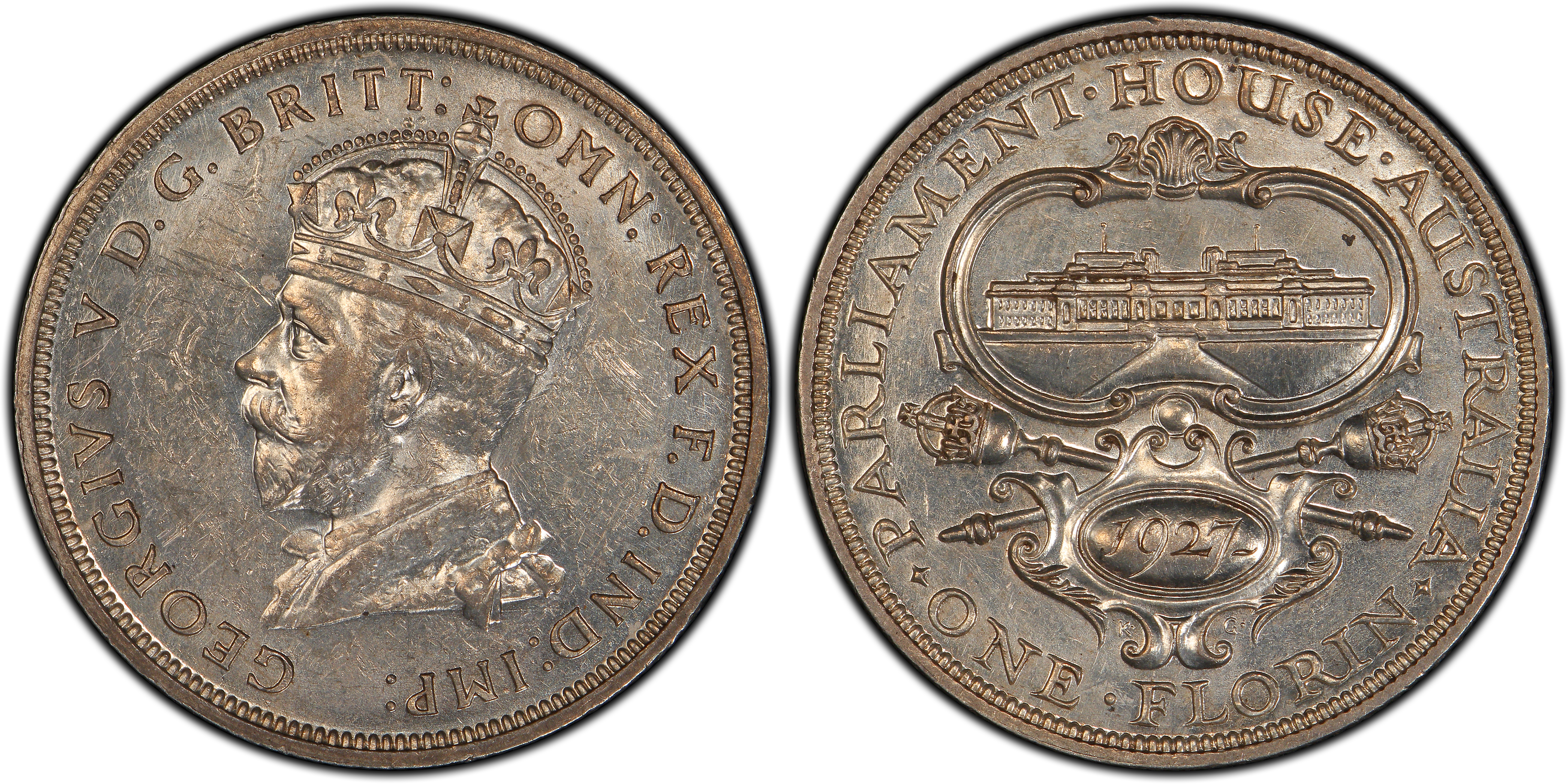 1927(m) Florin Canberra KM-31 AU58 认证号32440018, PCGS号17936
