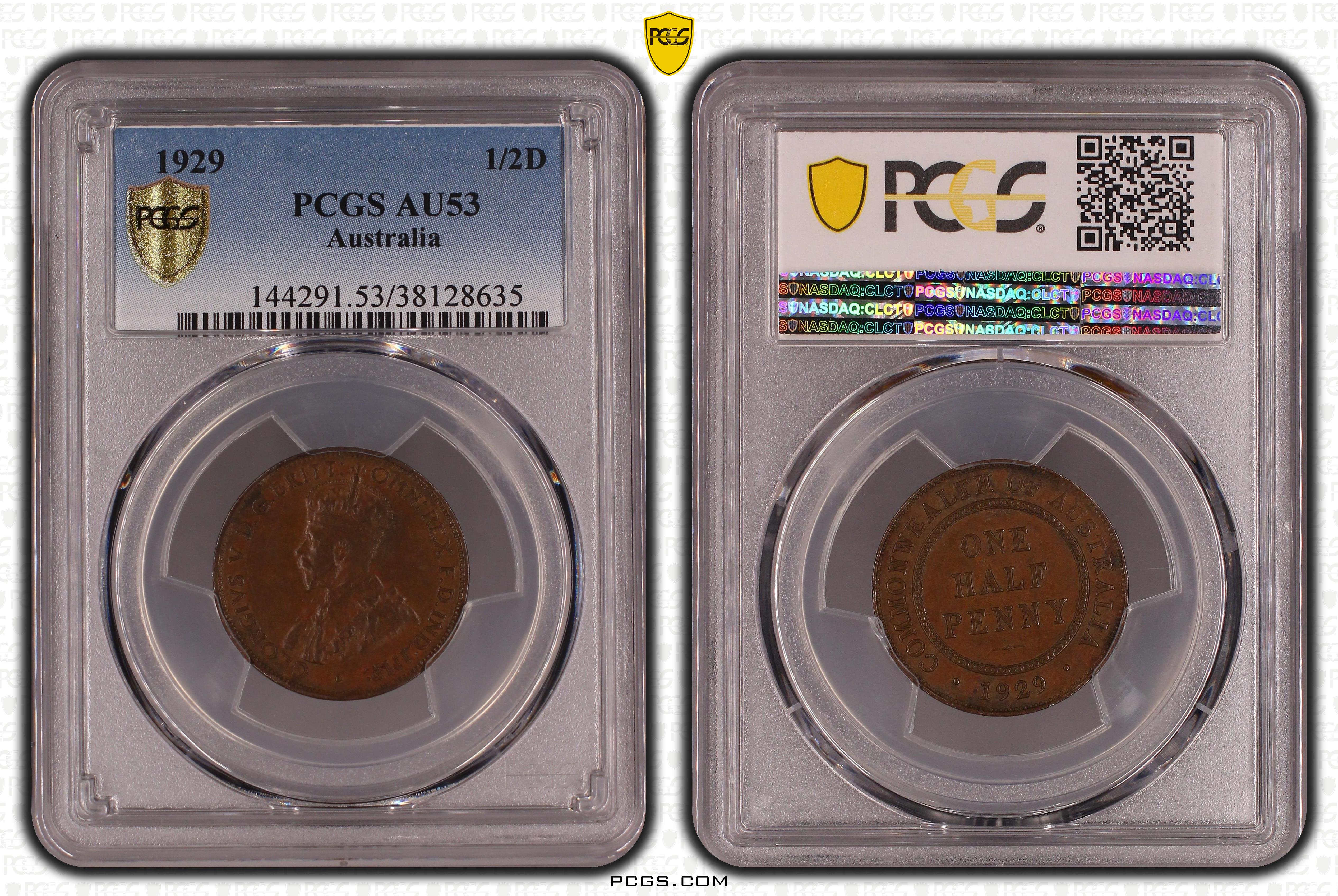 1929 1/2D KM-22, BN AU53BN 认证号38128635, PCGS号144291