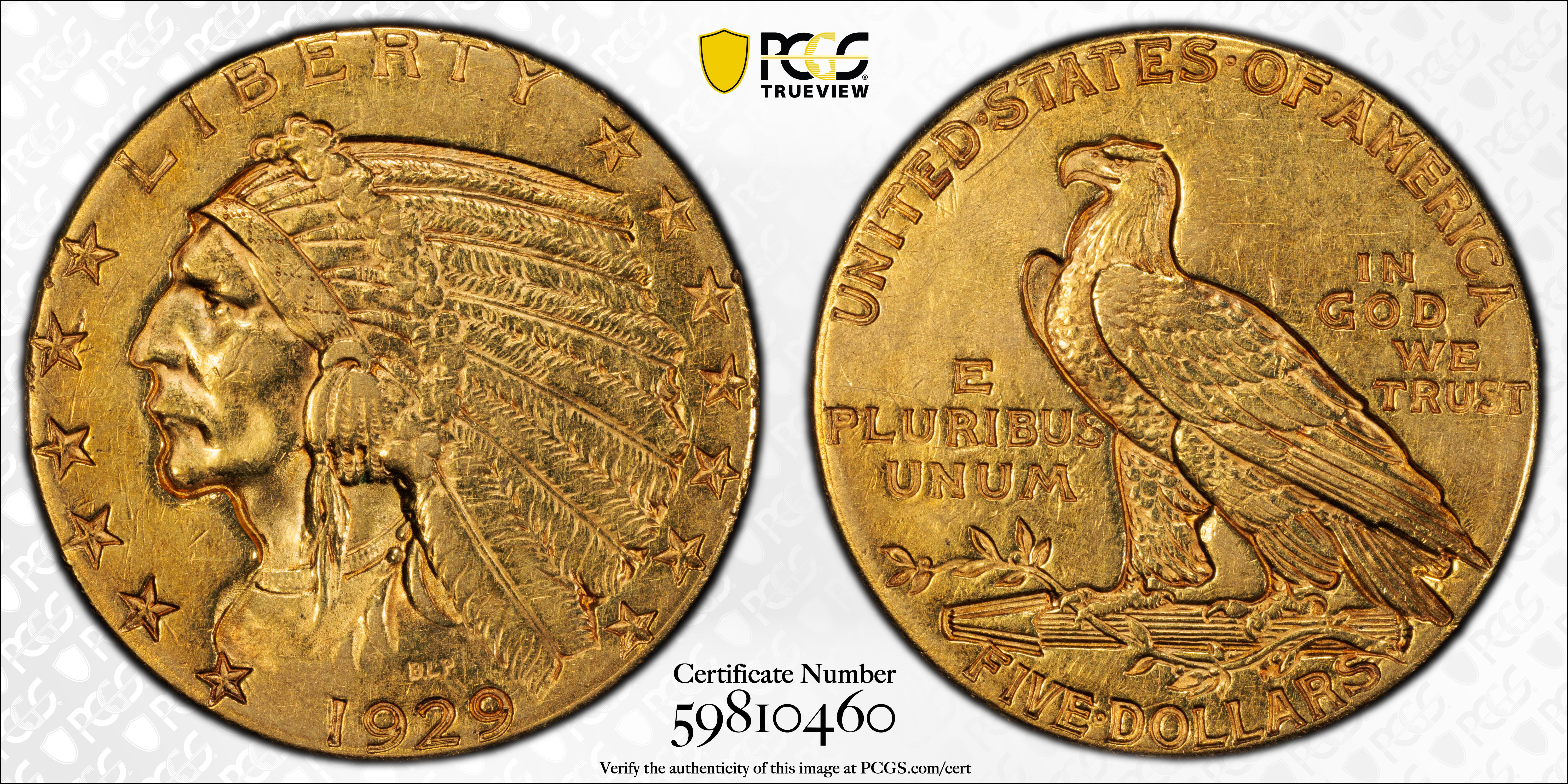 1929 $5 AU55 认证号59810460, PCGS号8533