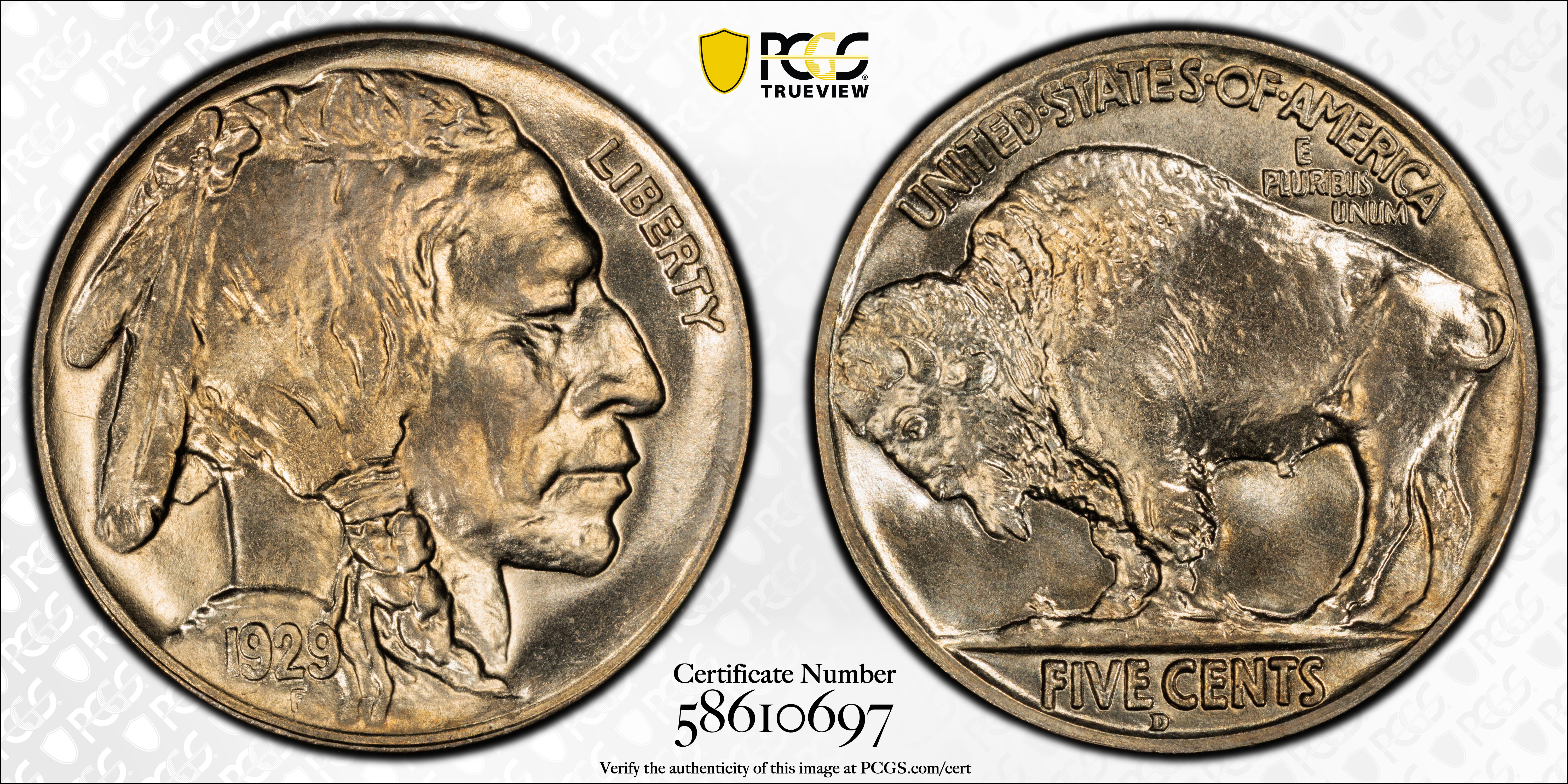 1929-D 5C MS66+ 认证号58610697, PCGS号3967
