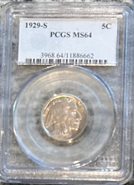 1929-S 5C MS64 认证号11886662, PCGS号3968