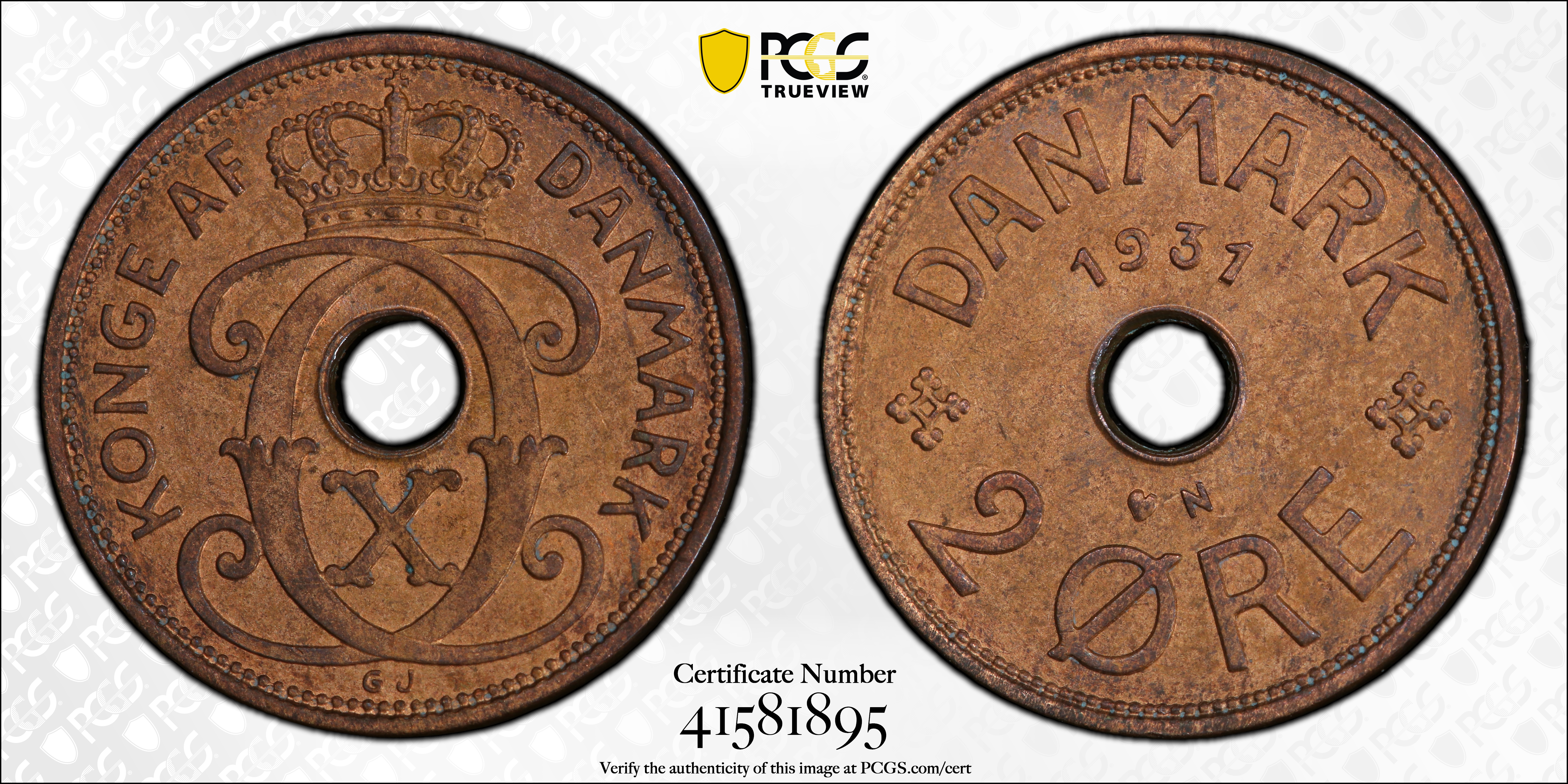 1931-N GJ 2 Øre, BN MS63BN 认证号41581895, PCGS号462249