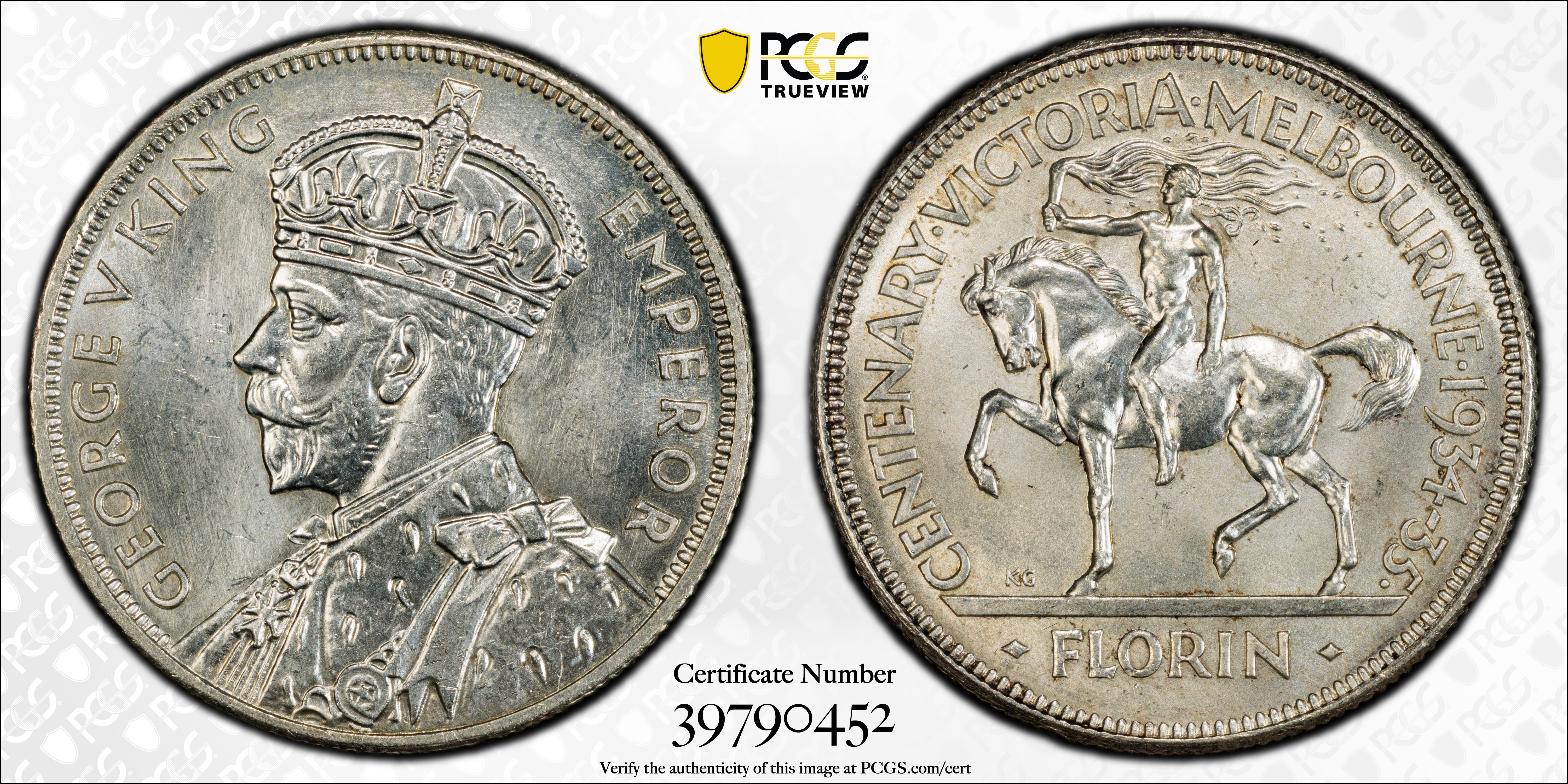 1934-35 Florin Centennial KM-33 Ag MS66 认证号39790452, PCGS号17941