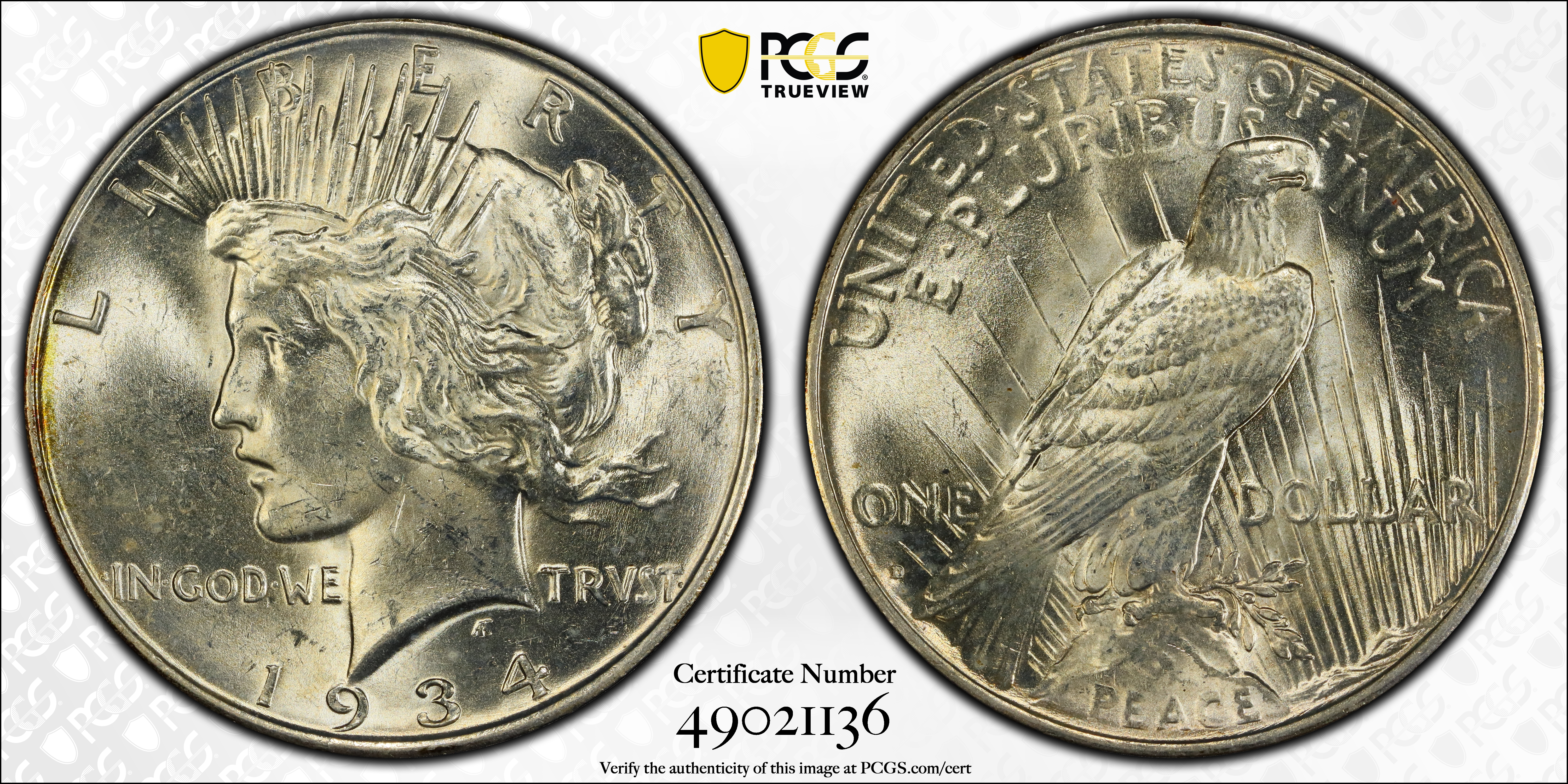 1934-D $1 MS62 认证号49021136, PCGS号7376