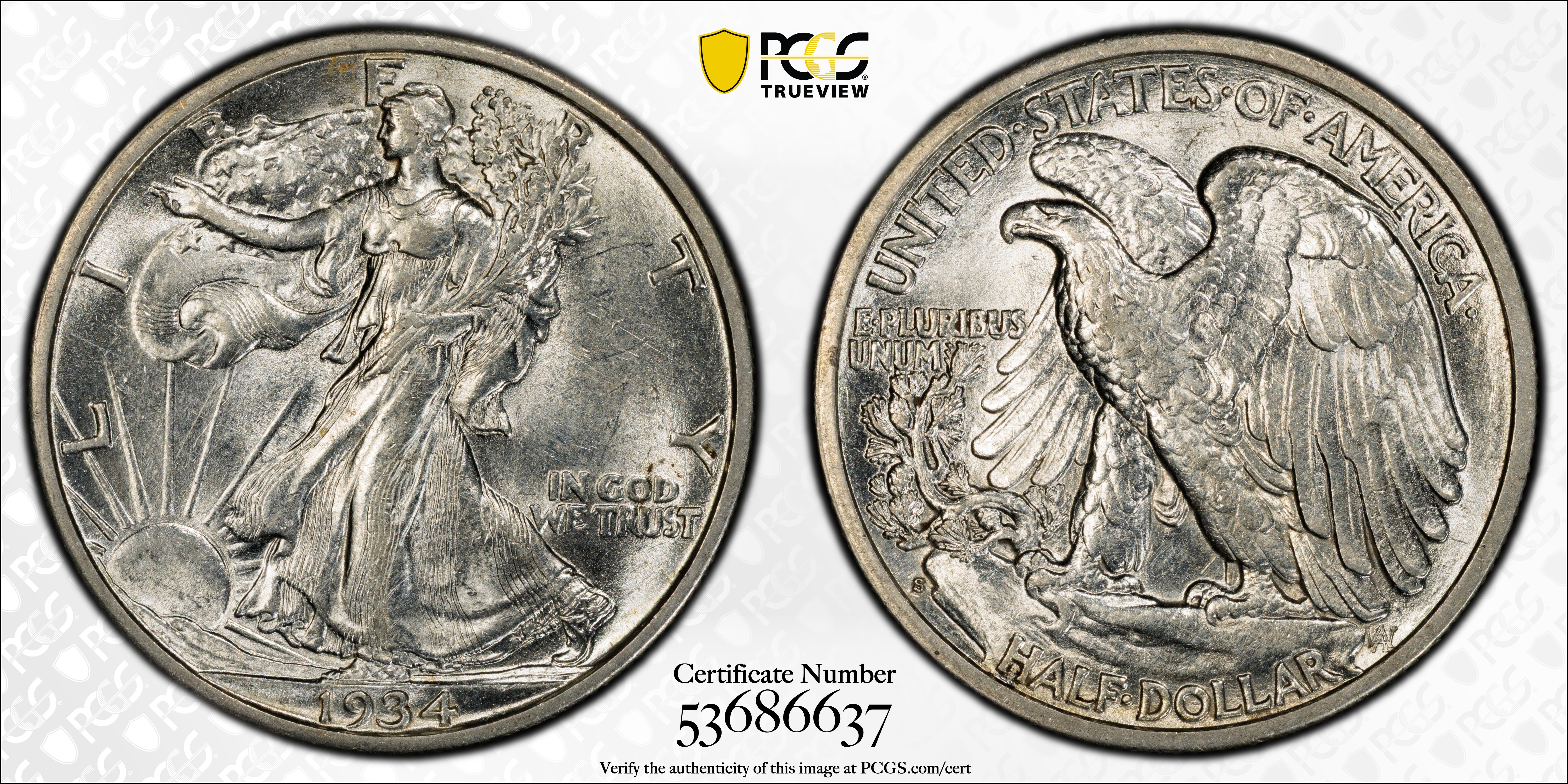 1934-S 50C AU58 认证号53686637, PCGS号6594