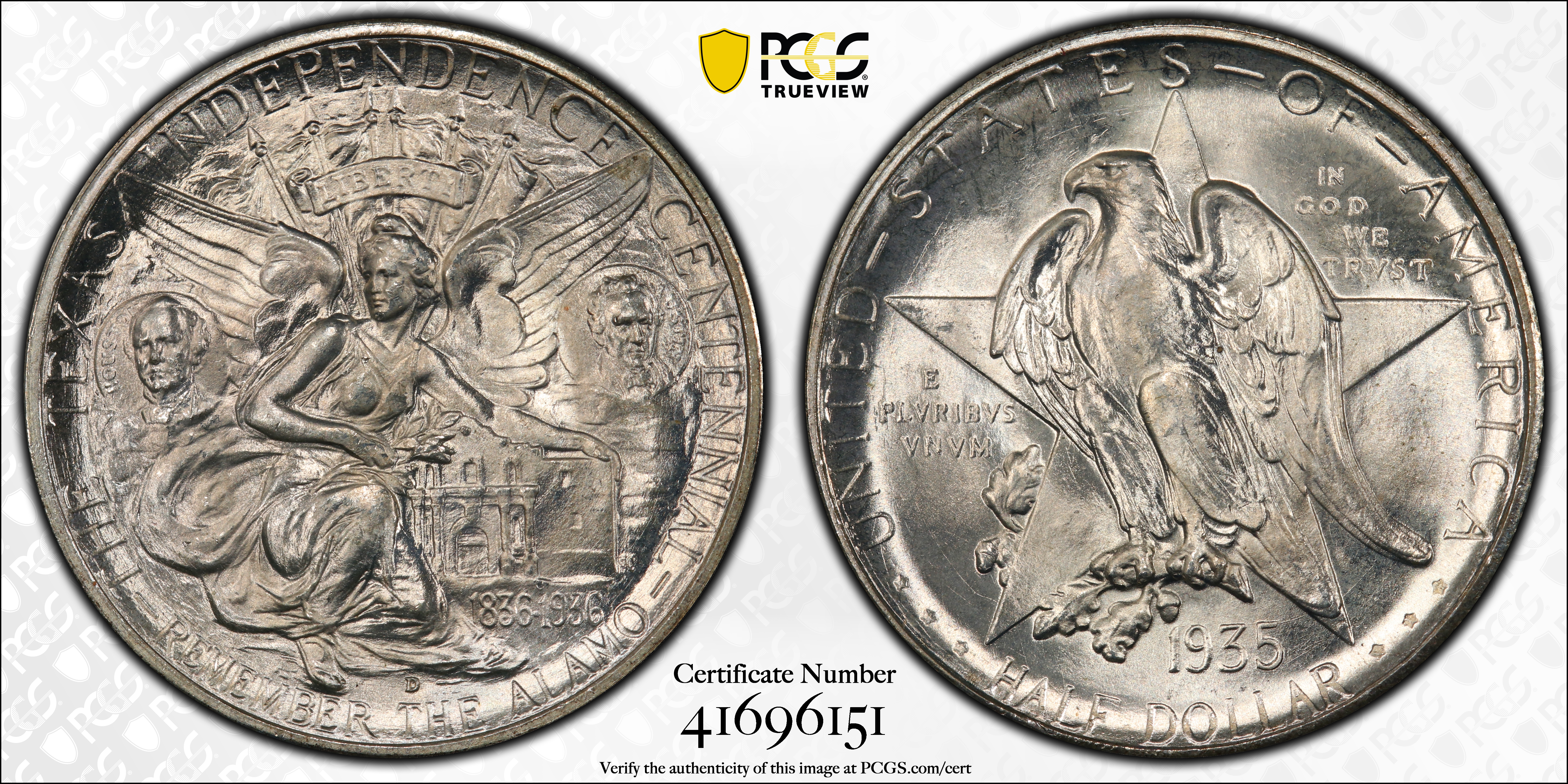 1935-D 50C Texas MS67 认证号41696151, PCGS号9383