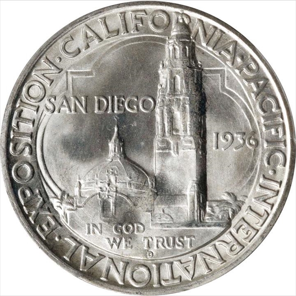 Today, the 1936-D San Diego is one of the most readily available silver commemoratives of the classic 1892-1954 era, though it exists in "only" about 60% of the quanties that exist for the 1935-S...in virtually every Mint State grade. The typical 1936-D San Diego grades MS64 to MS66 and many very frosty Gems survive.