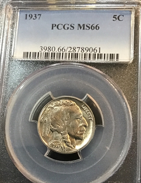 1937 5C MS66 认证号28789061, PCGS号3980