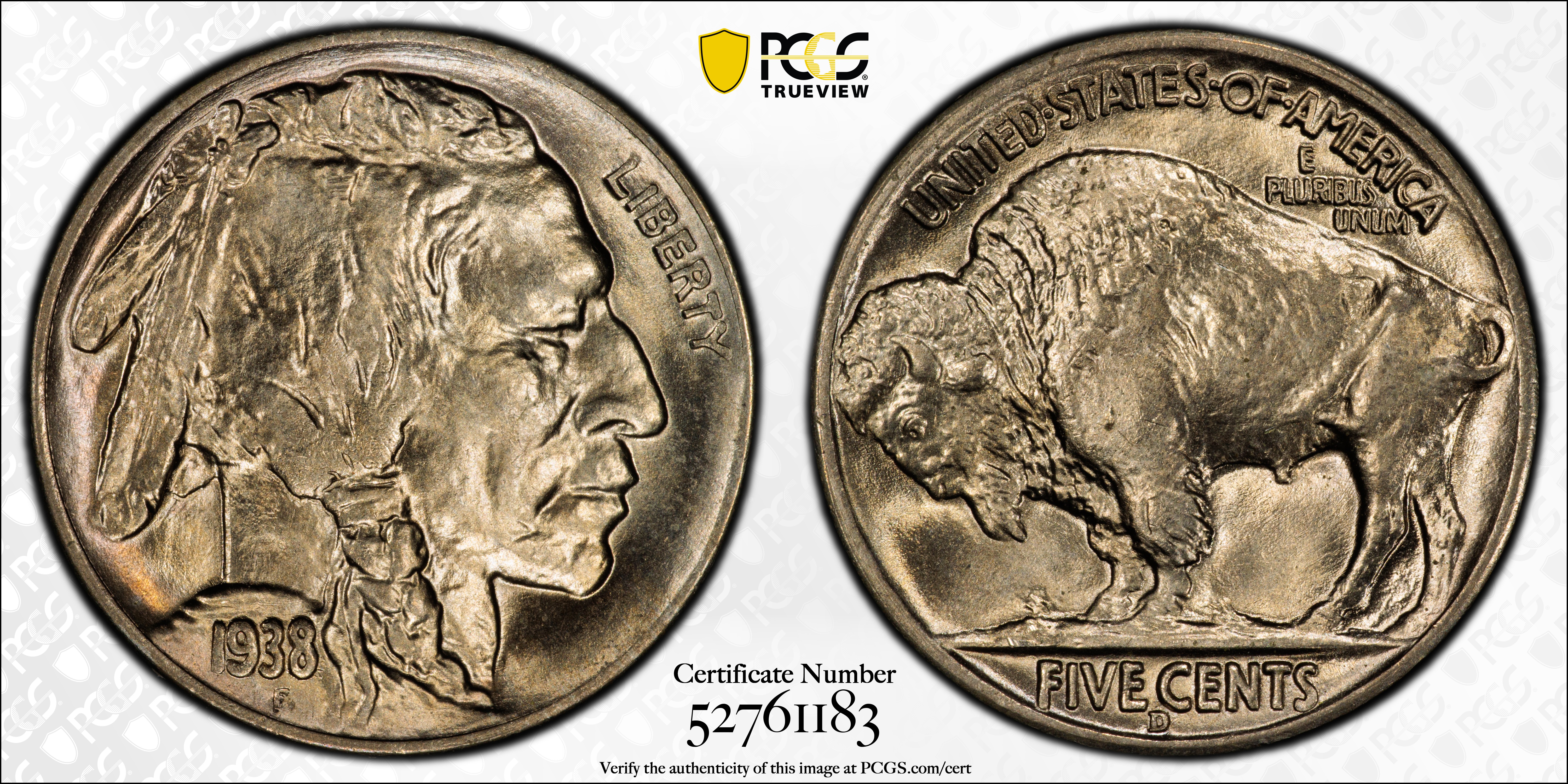 1938-D 5C Buffalo MS67 认证号52761183, PCGS号3984