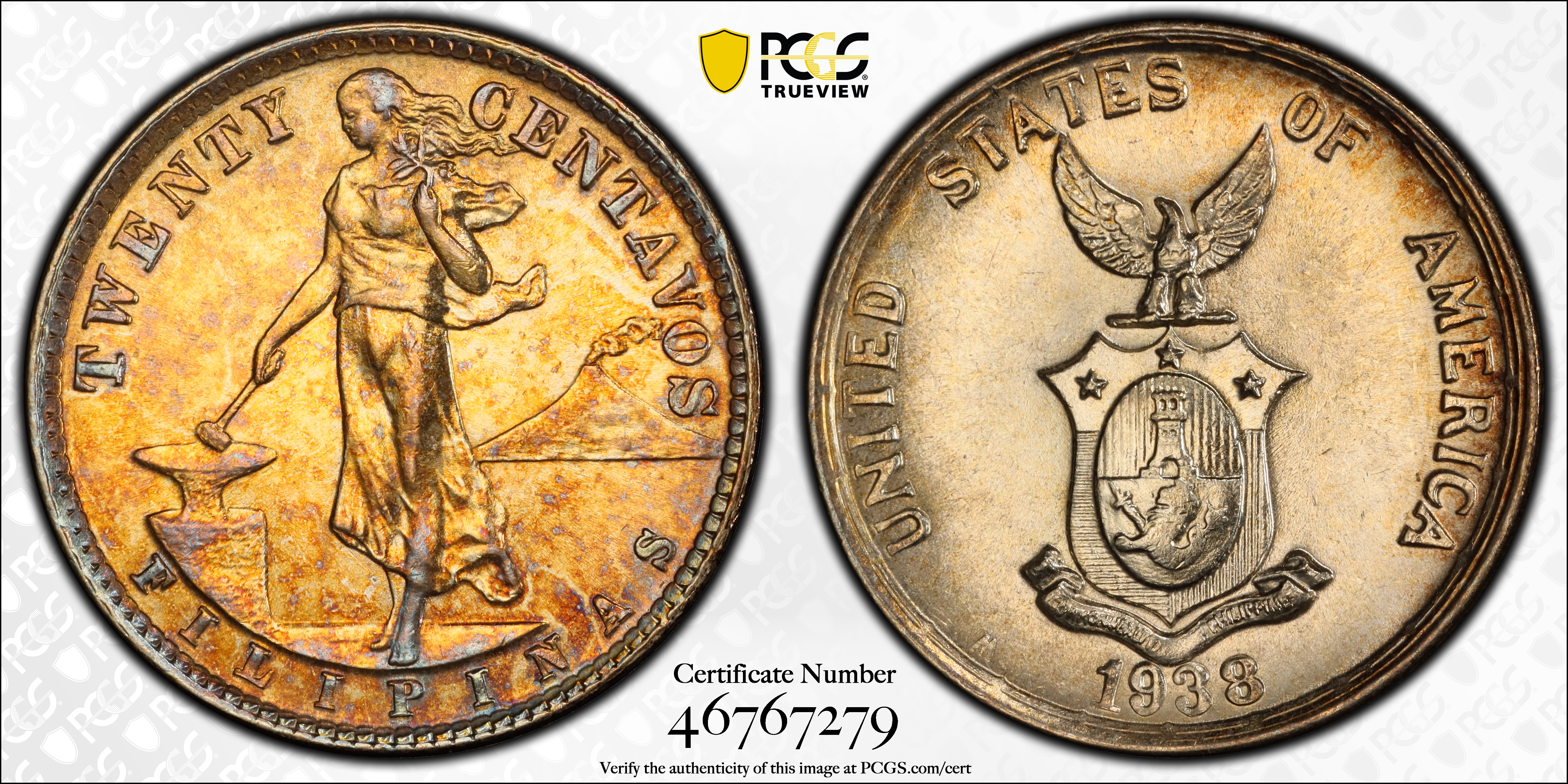 1938-M 20C MS62 认证号46767279, PCGS号90332