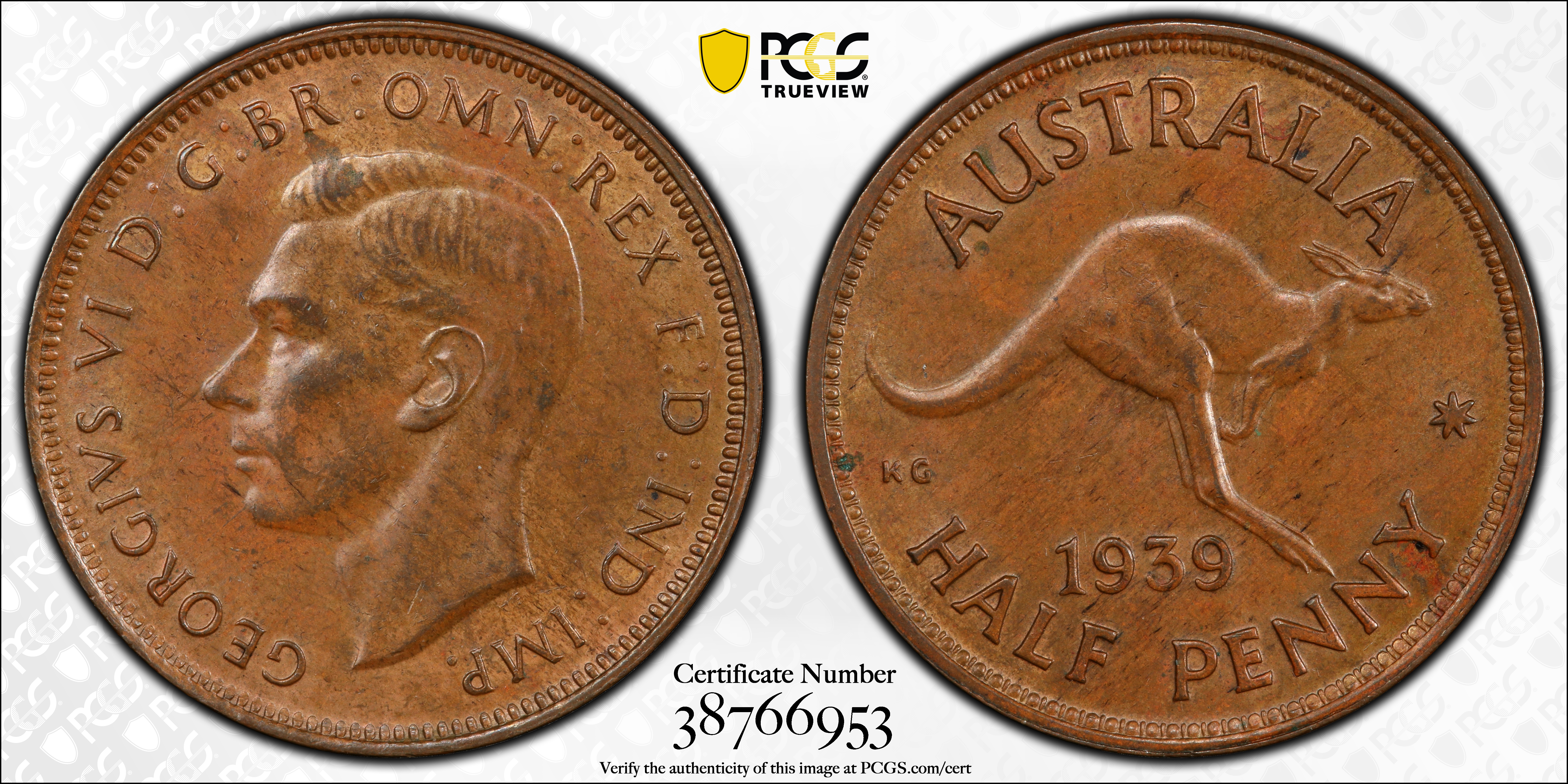 1939 1/2D Kangaroo Reverse, BN MS62+ BN 认证号38766953, PCGS号404191