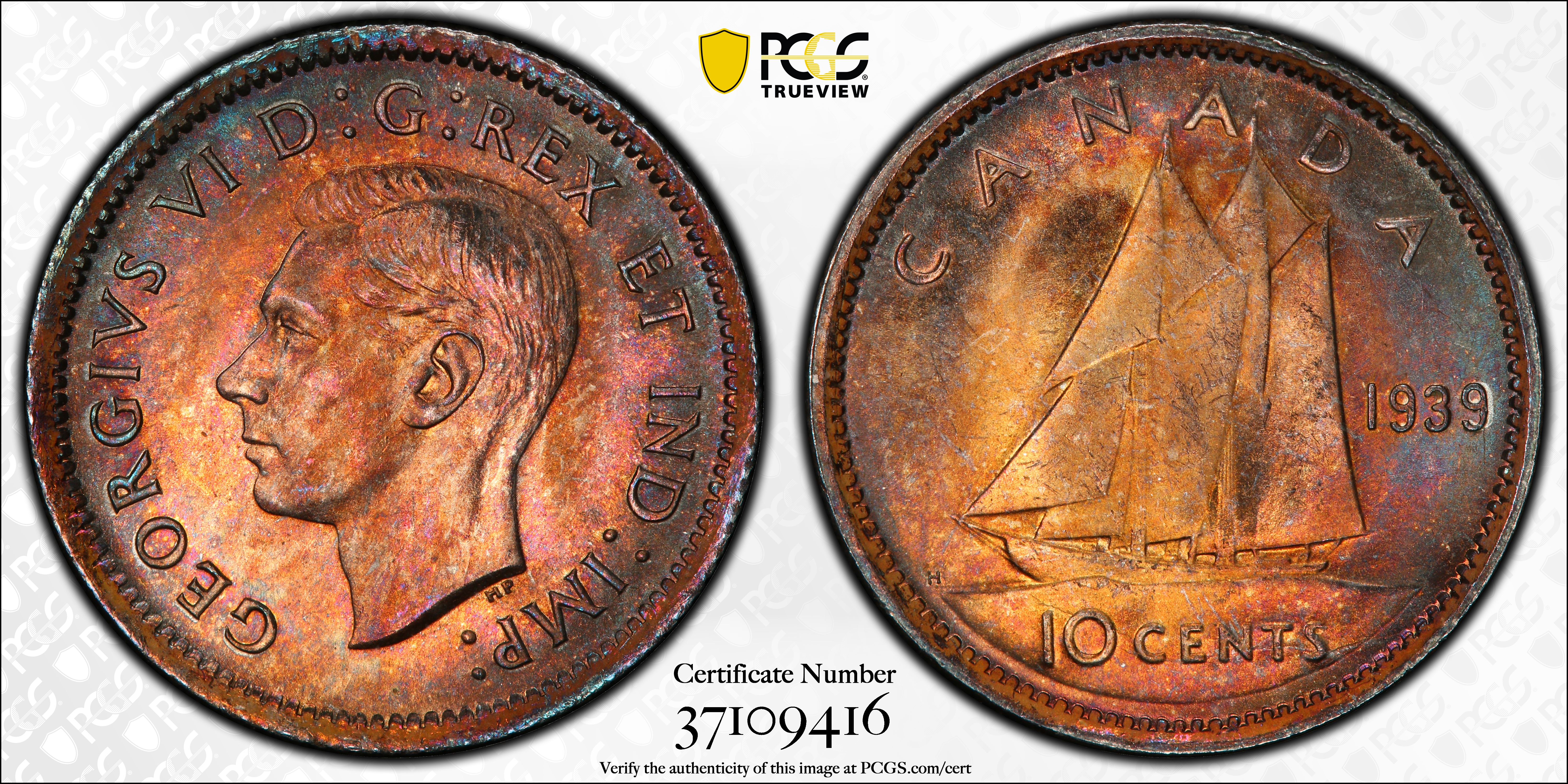 1939 10C MS64 认证号37109416, PCGS号31491