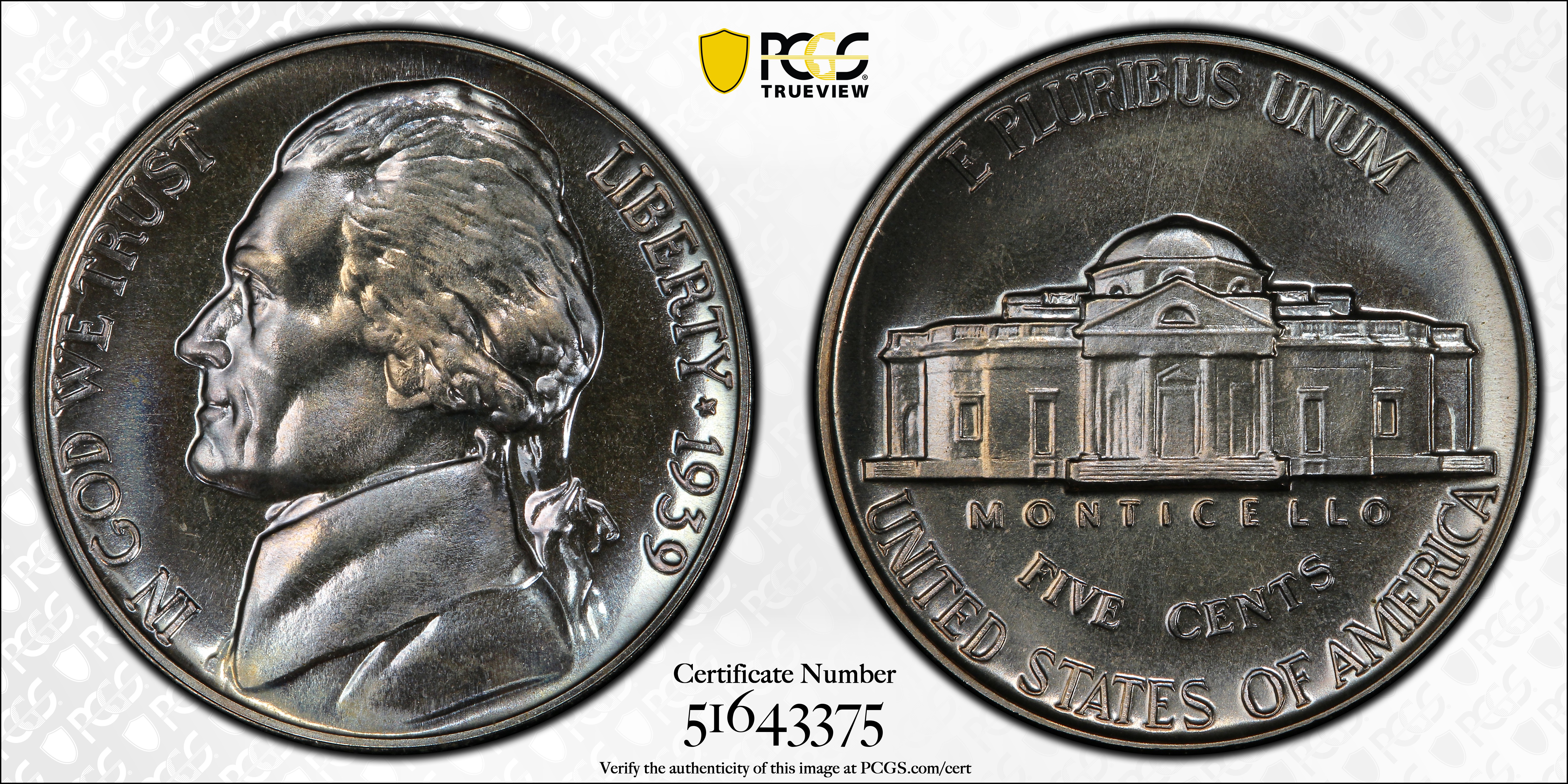 1939 5C Reverse of 1938 PR68 认证号51643375, PCGS号4176