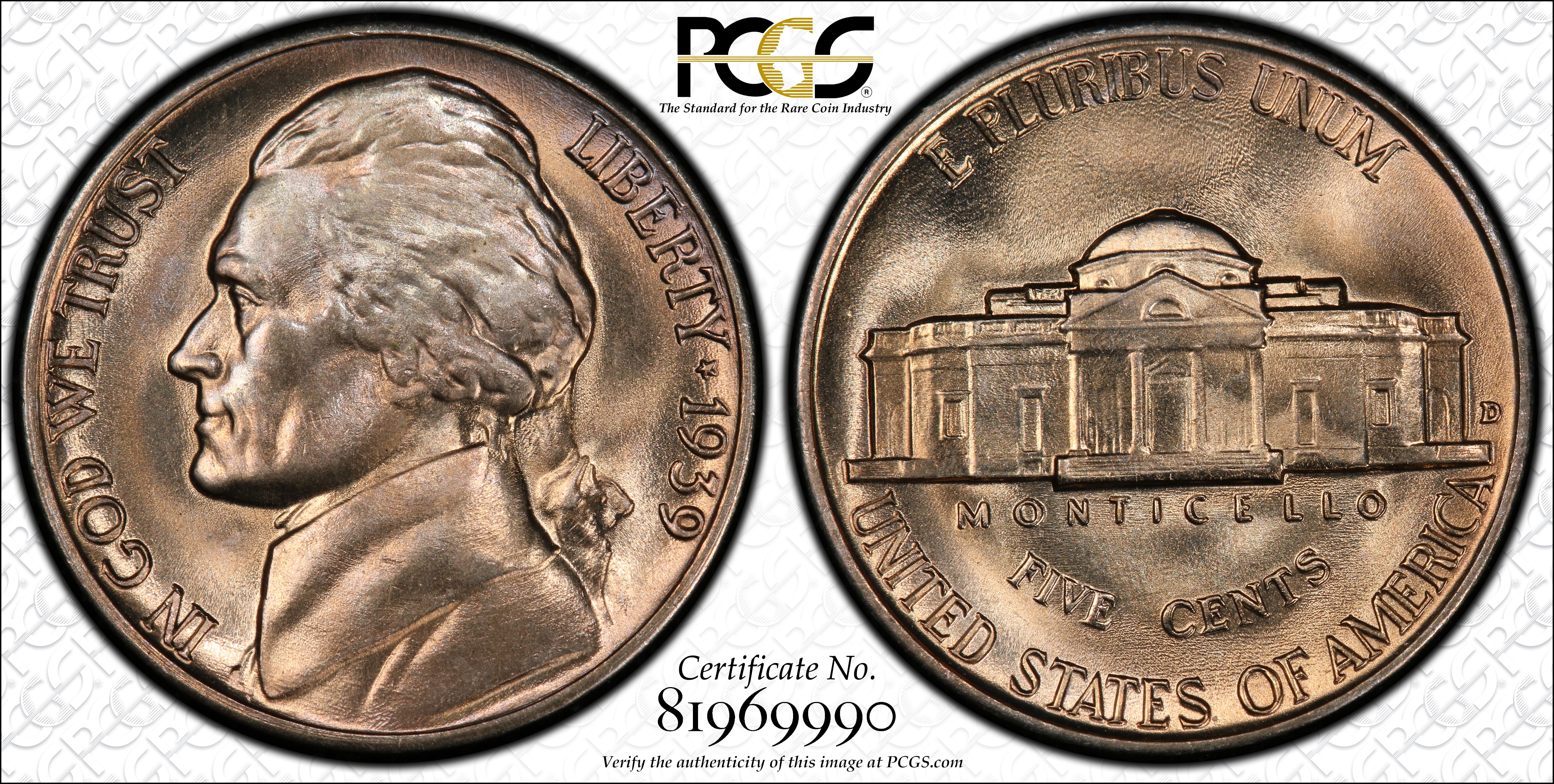 1939-D 5C Reverse of 1938, FS MS67FS 认证号81969990, PCGS号84005