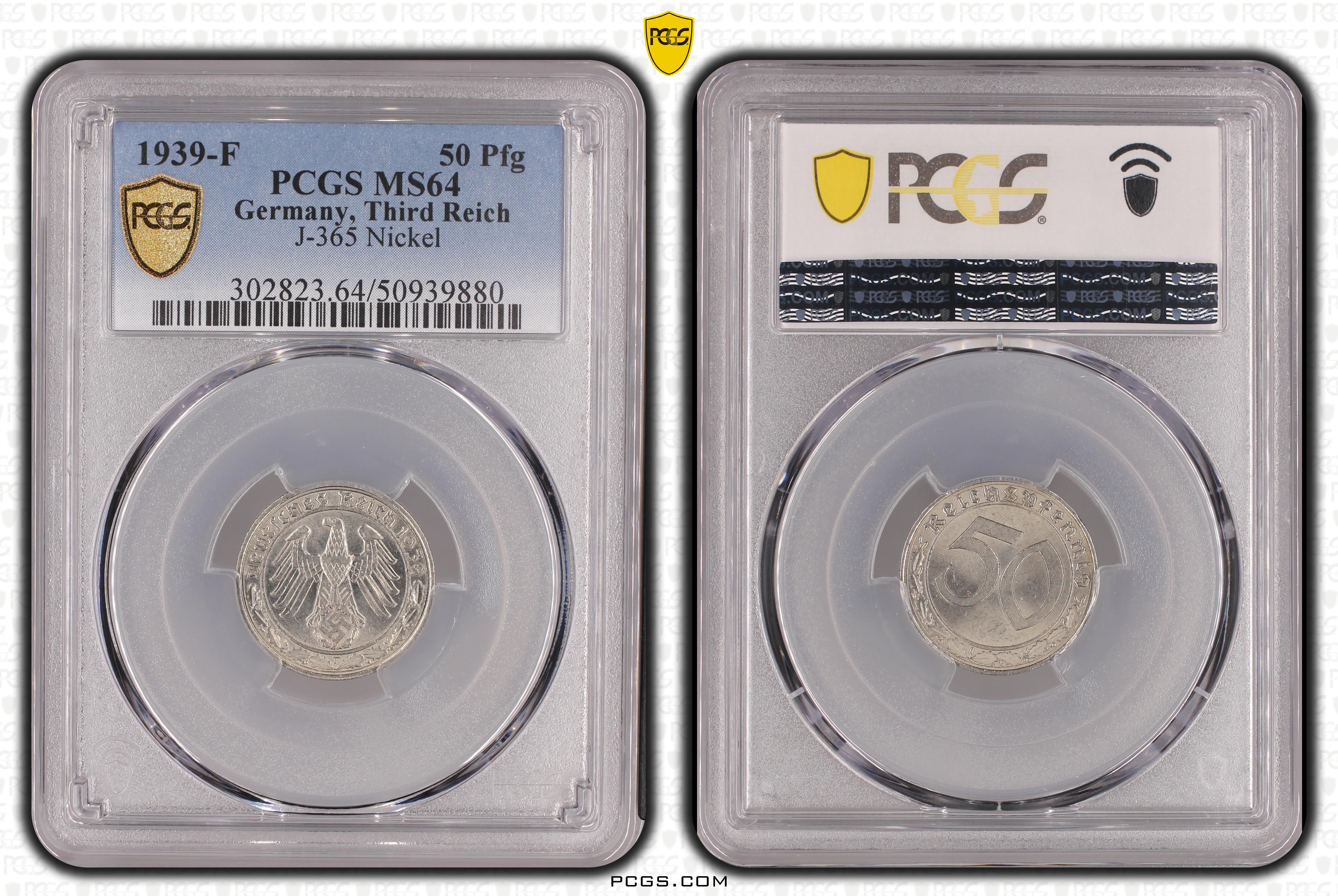 1939-F 50 Pfg J-365 Nickel MS64 认证号50939880, PCGS号302823