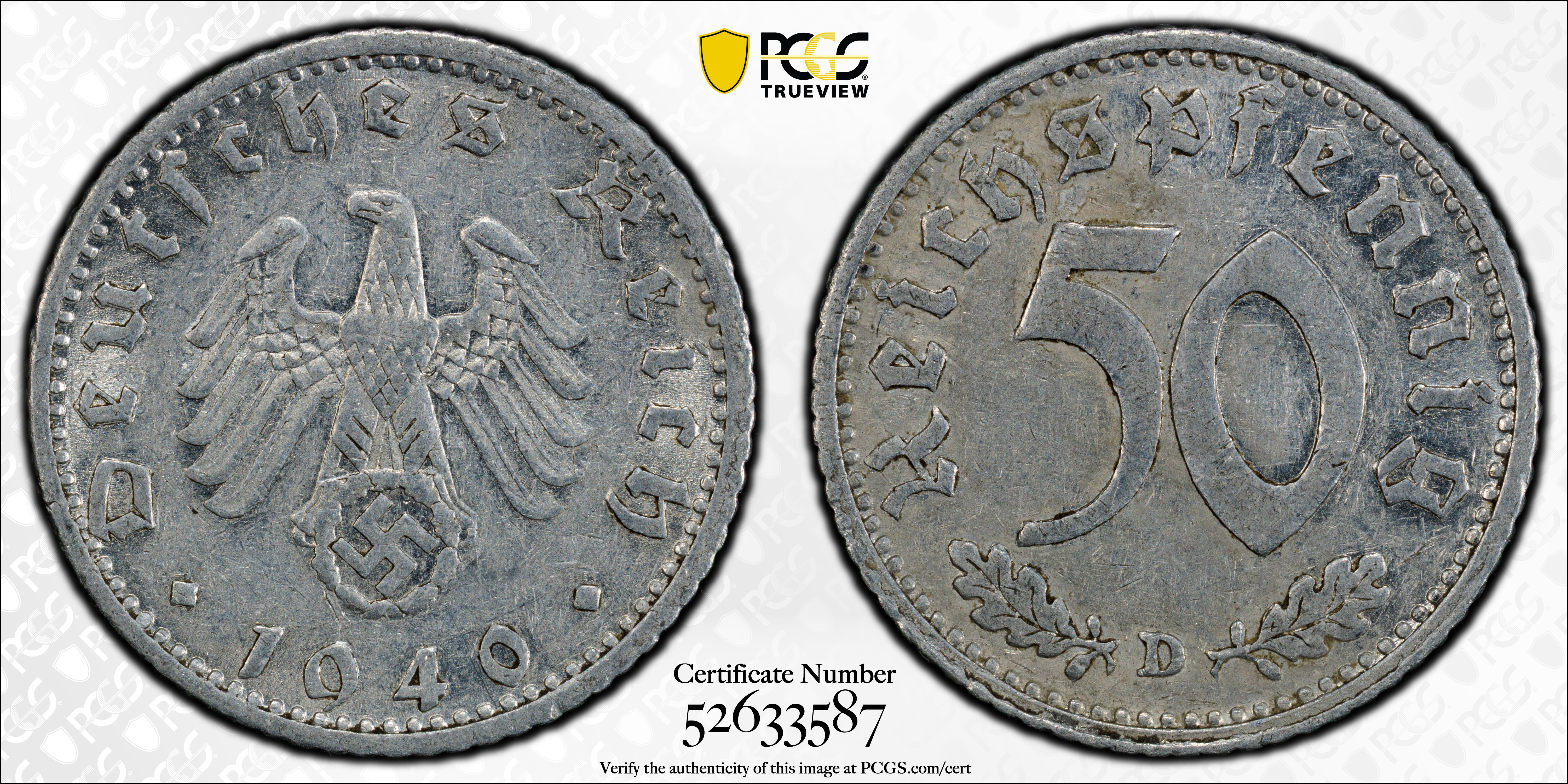 1940-D 50 Pfg J-372 AU53 认证号52633587, PCGS号302855