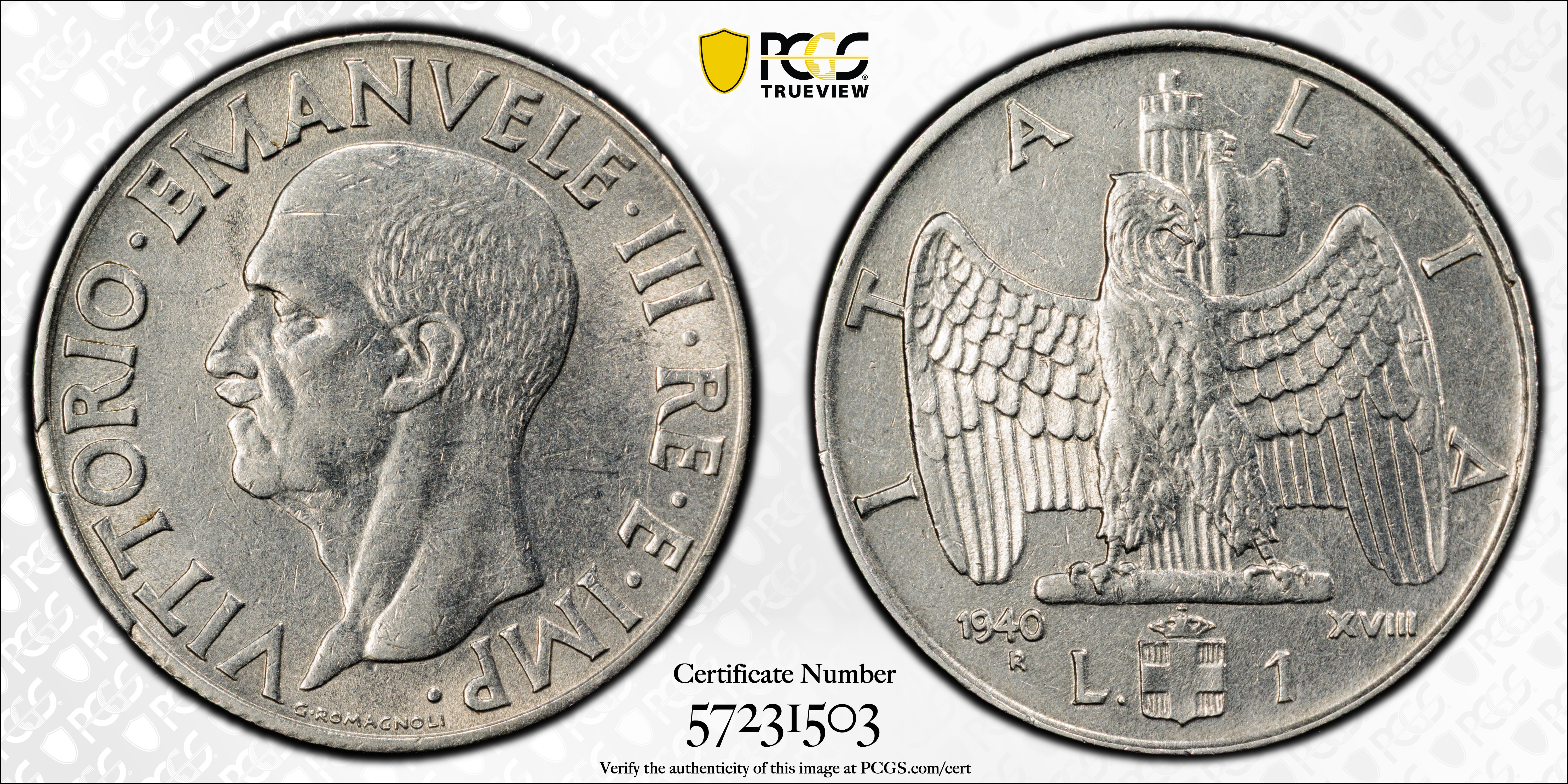 1940-R Lira KM-77a Non-magnetic AU55 认证号57231503, PCGS号358221