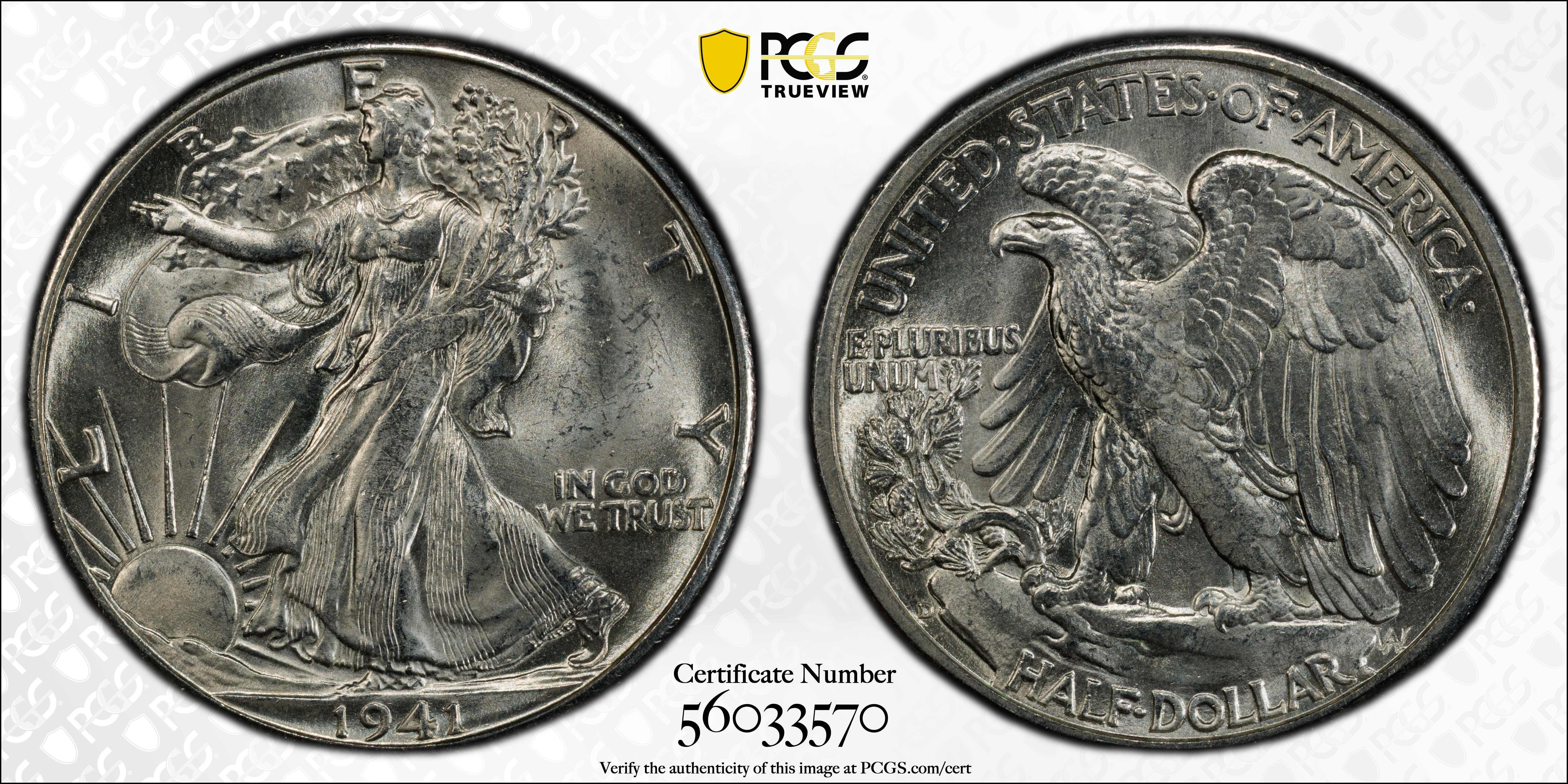 1941-D 50C MS65 认证号56033570, PCGS号6612