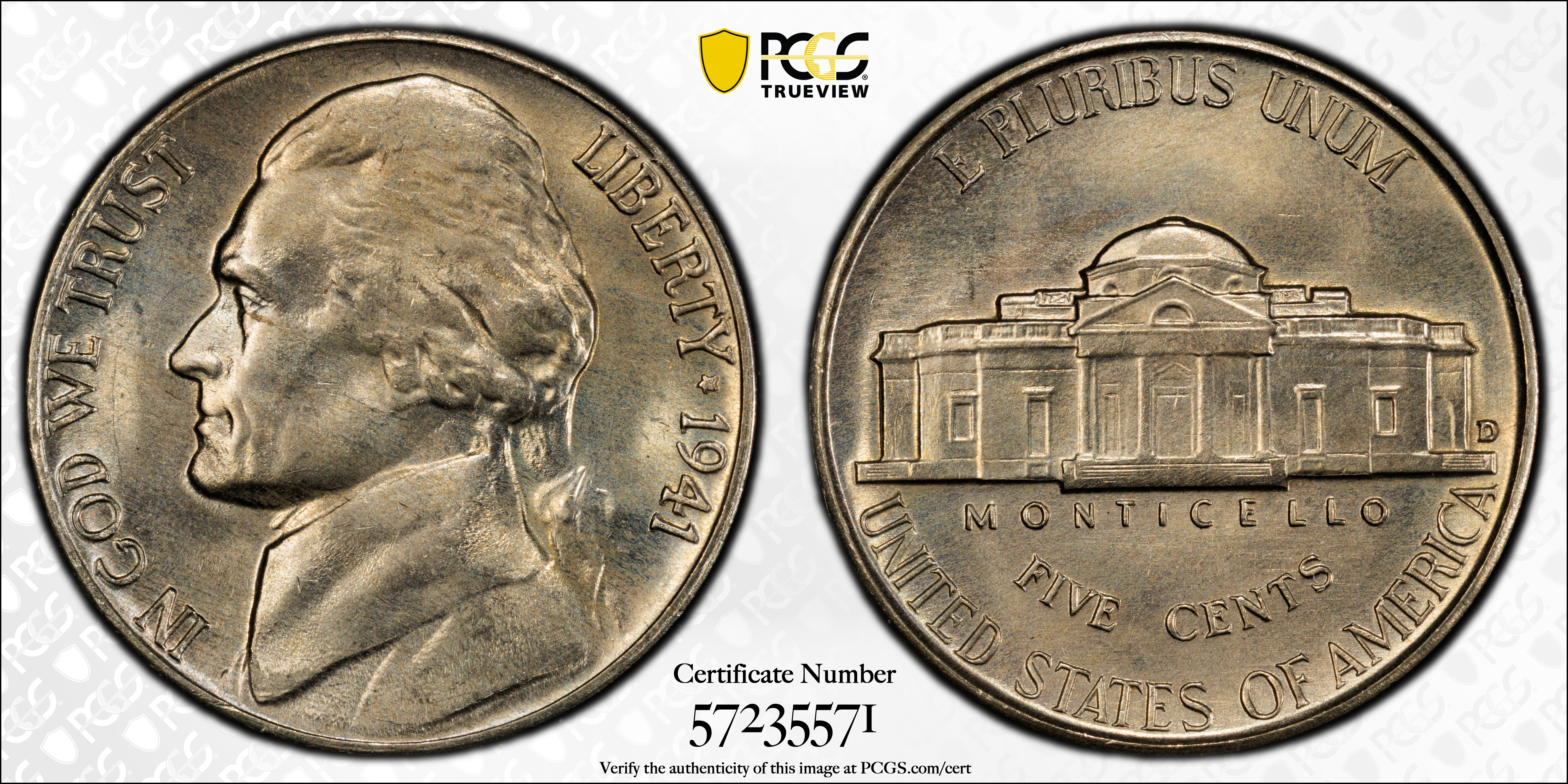1941-D 5C MS66 认证号57235571, PCGS号4011