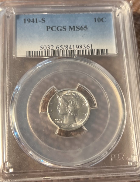 1941-S 10C MS65 认证号84198361, PCGS号5032