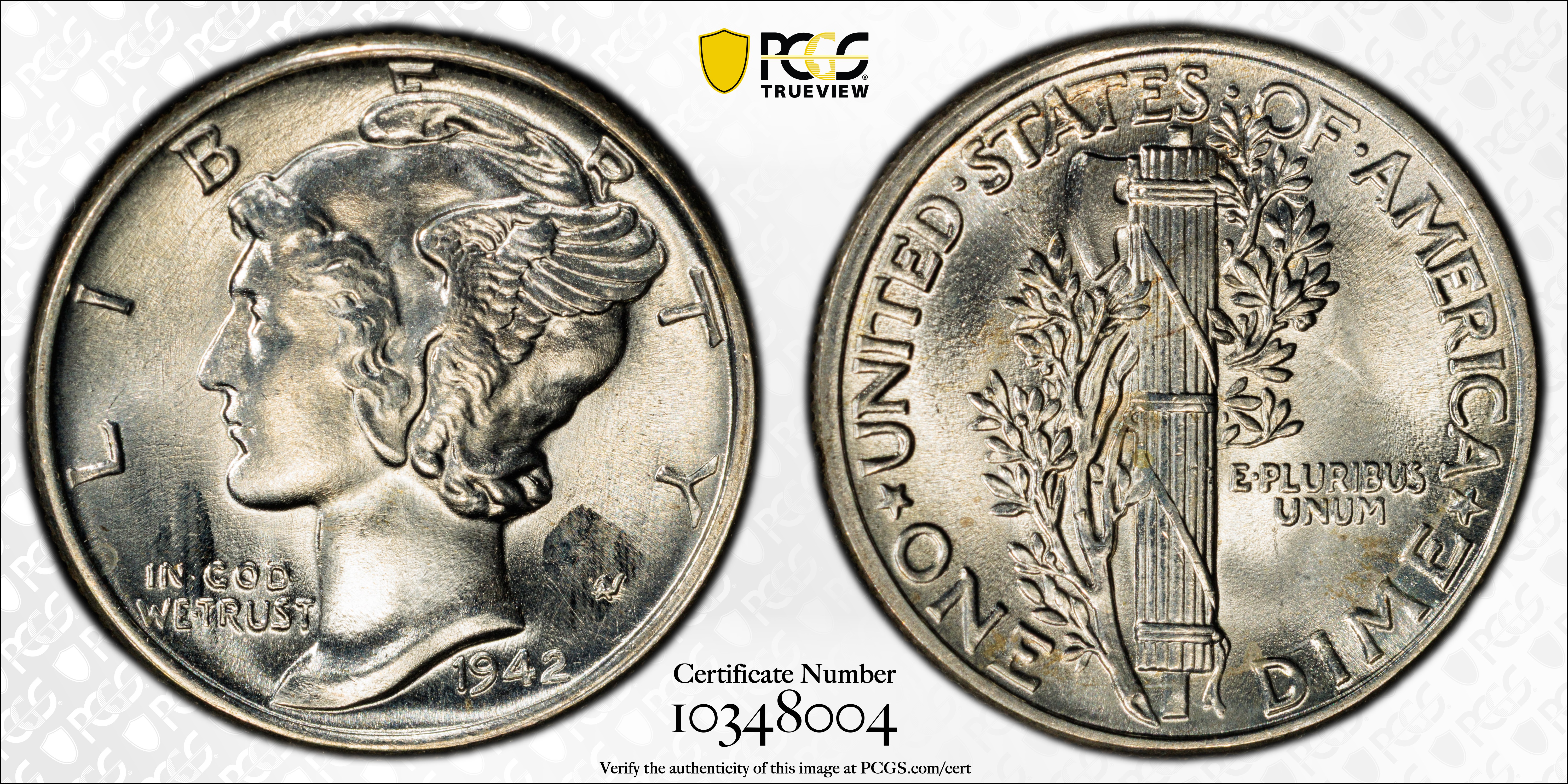 1942 10C, FB MS66FB 认证号10348004, PCGS号5035