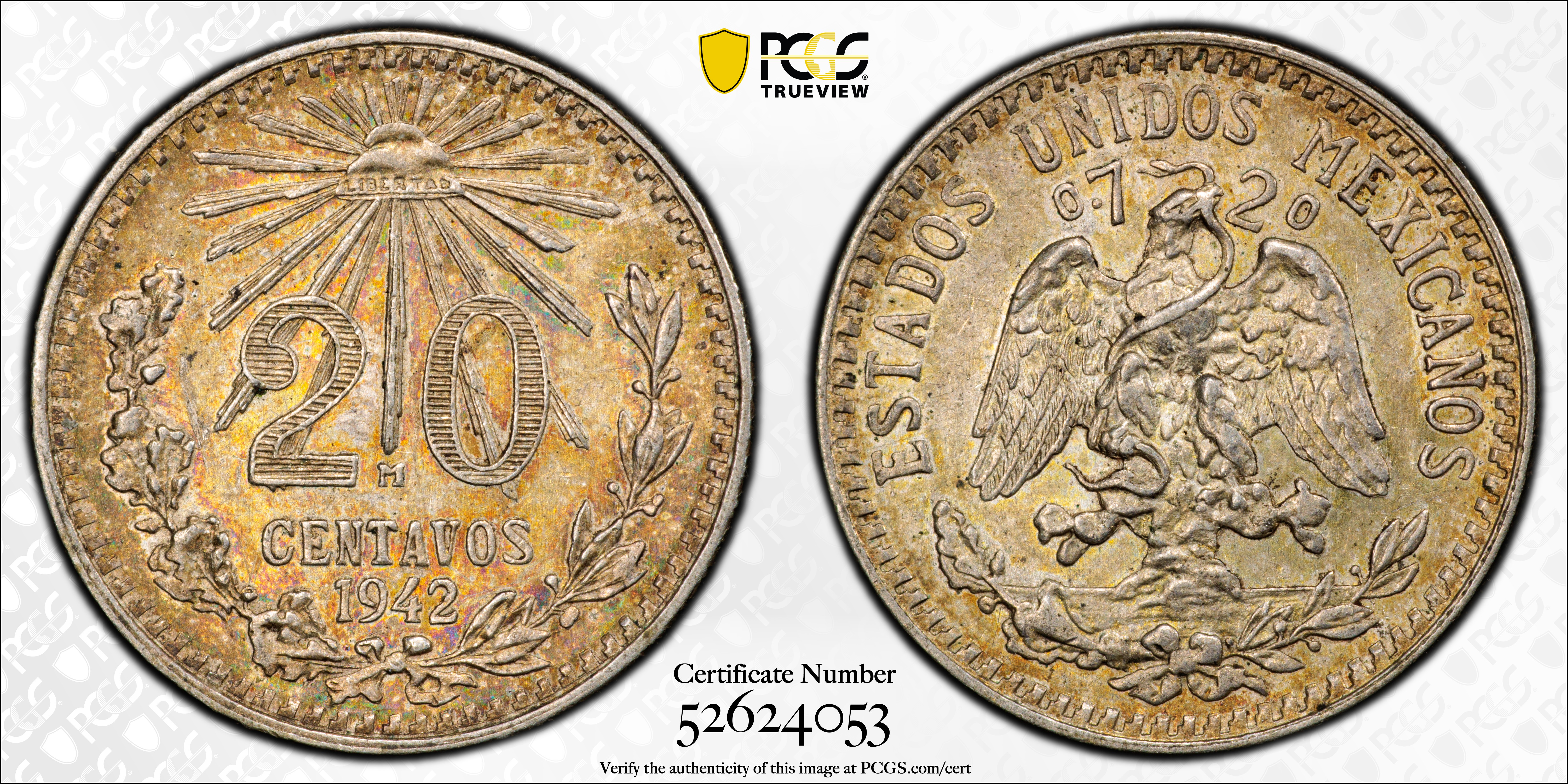 1942-M 20C KM-438 Ag MS64 认证号52624053, PCGS号525526