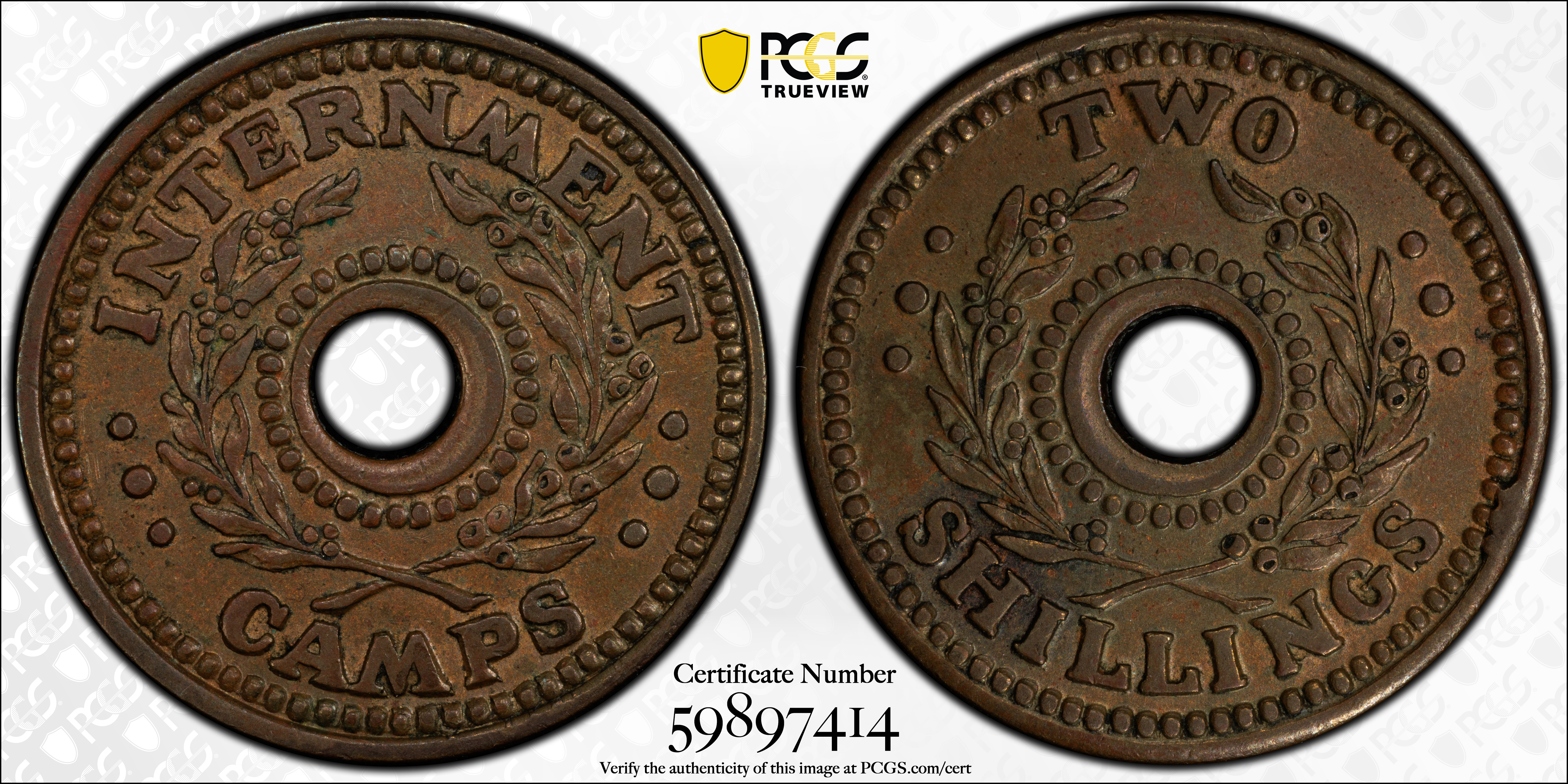 (1943) 2 Shil KM-Tn4.1 Internment Camp, BN MS62BN 认证号59897414, PCGS号506555