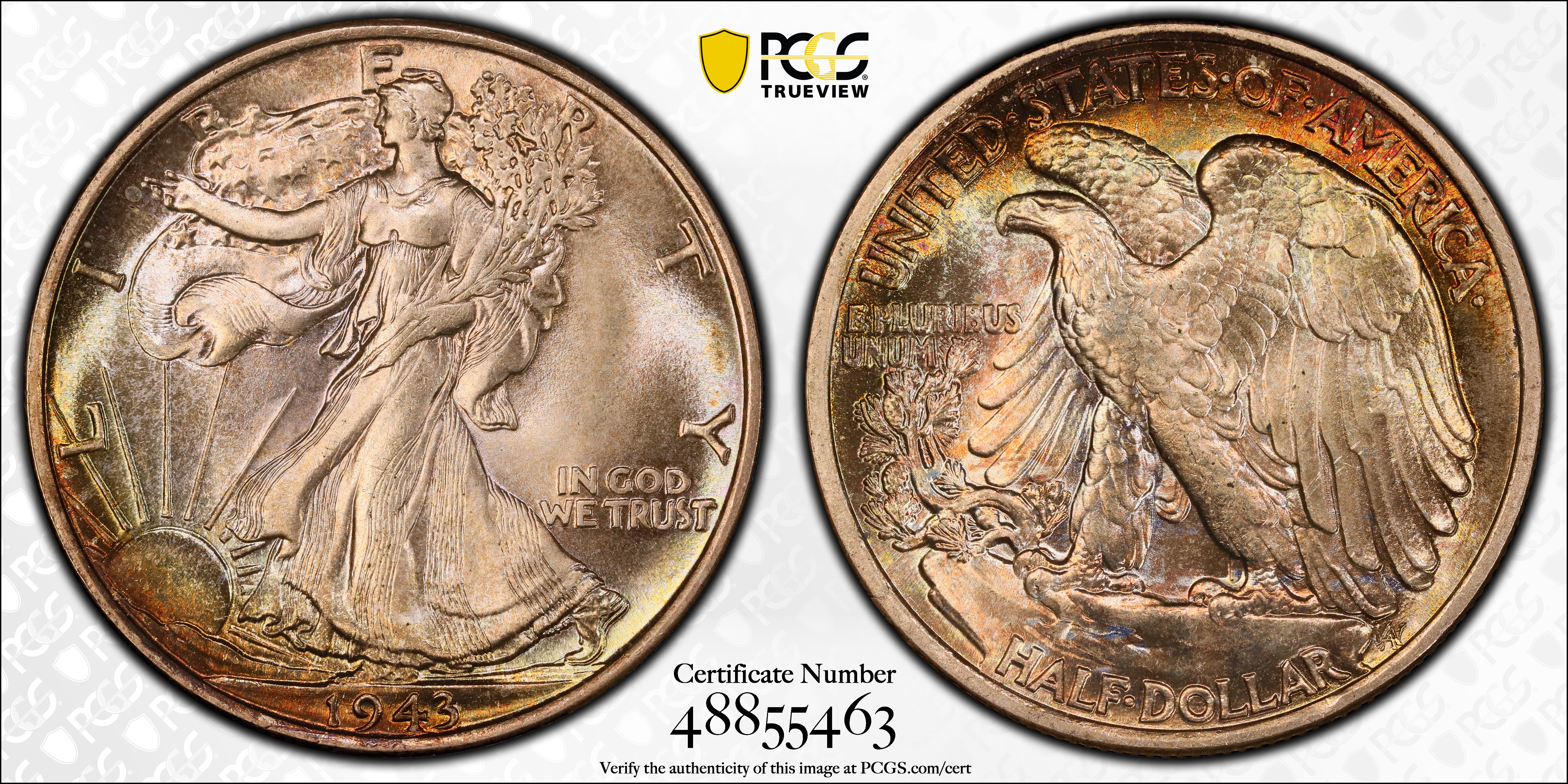 1943 50C MS67+ 认证号48855463, PCGS号6618